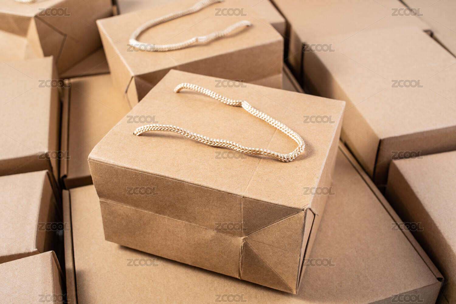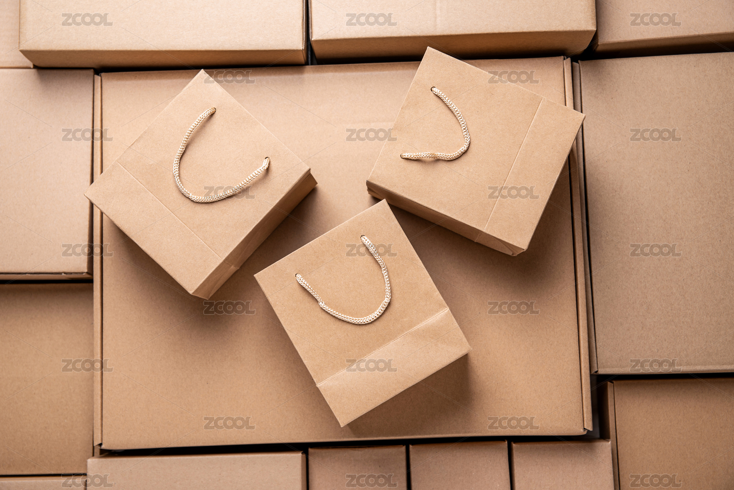 满屏的快递盒纸箱子和牛皮纸购物袋网购概念图