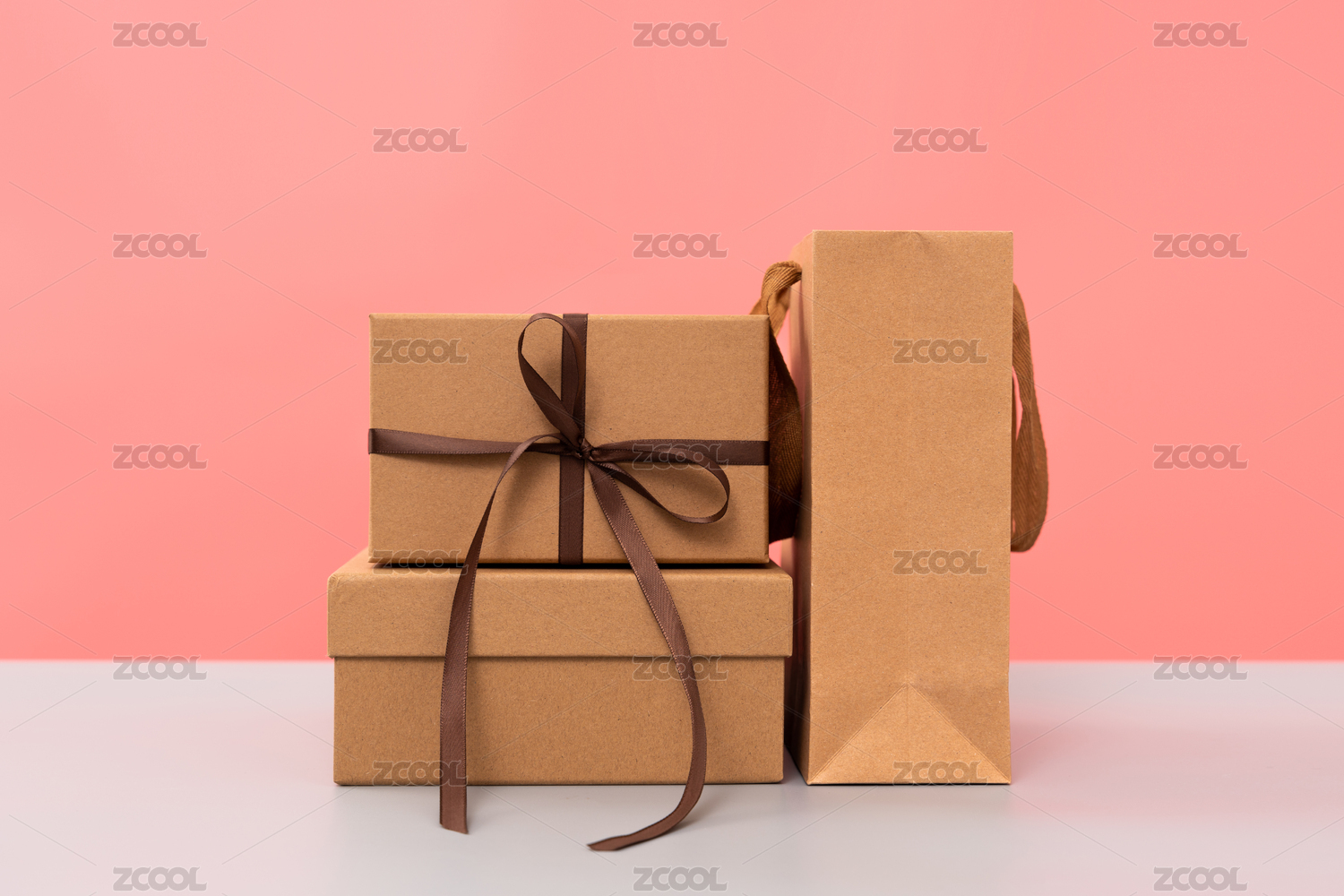 红色背景上的牛皮纸购物袋消费网购概念图