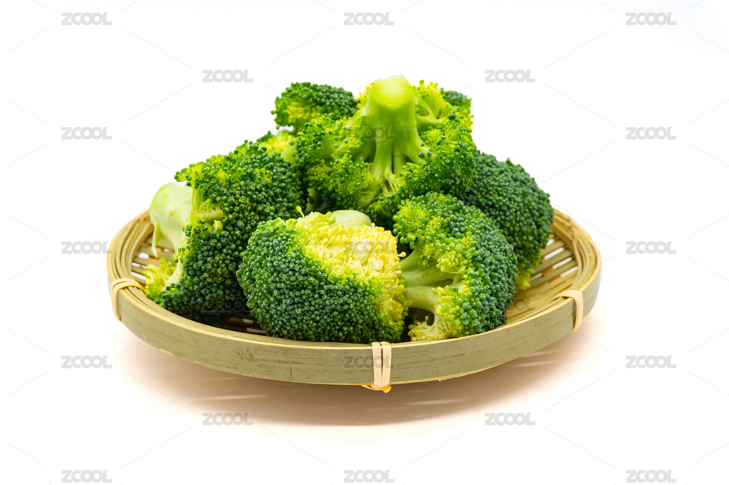 白色背景影棚静物拍摄切开的西兰花剖面特写