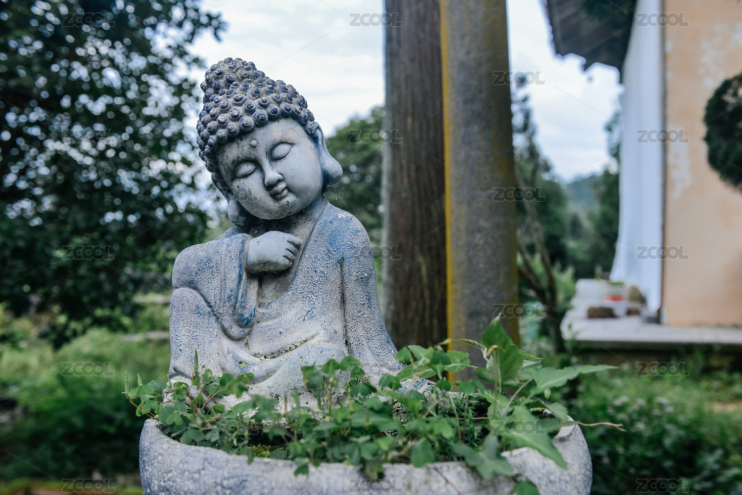 天台县石梁镇通玄寺风景门口的可爱佛像石雕