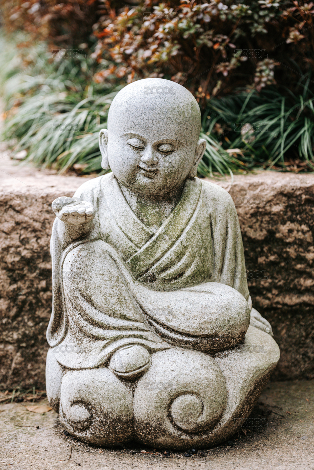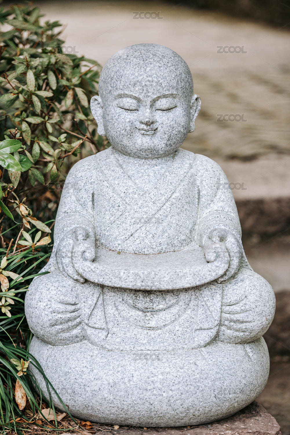 中式庭院花园布置禅意沙弥小和尚景观摆件