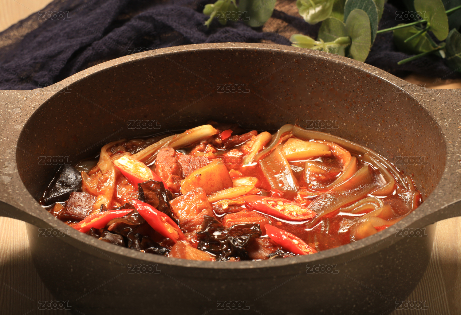 中餐,东北菜,白菜,粉条,猪肉,肉片,葱段,炖白菜,石锅,小白菜