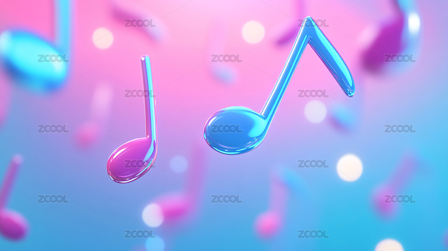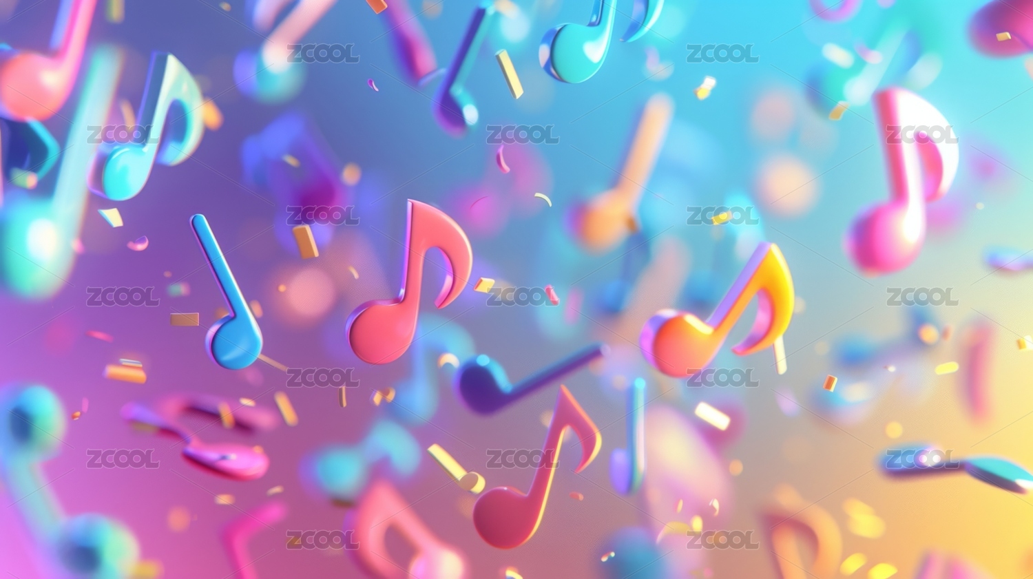 3D马卡龙多彩音乐音符形状艺术背景插画