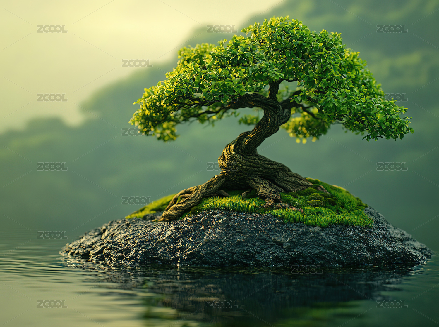 松树,迎客松,佛系,禅意,3D,励志,背景
