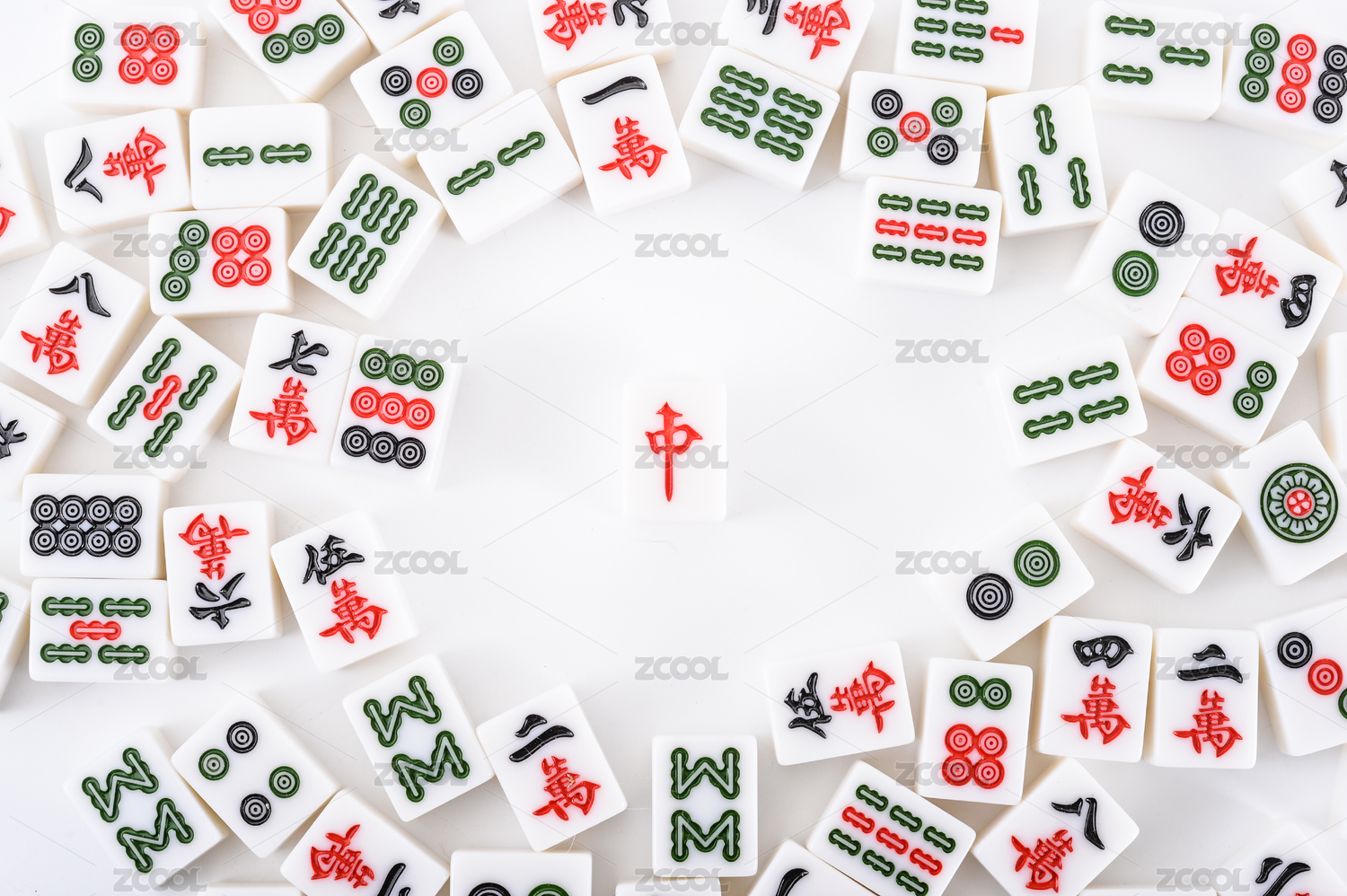 很多中国麻将牌的俯视背景特写