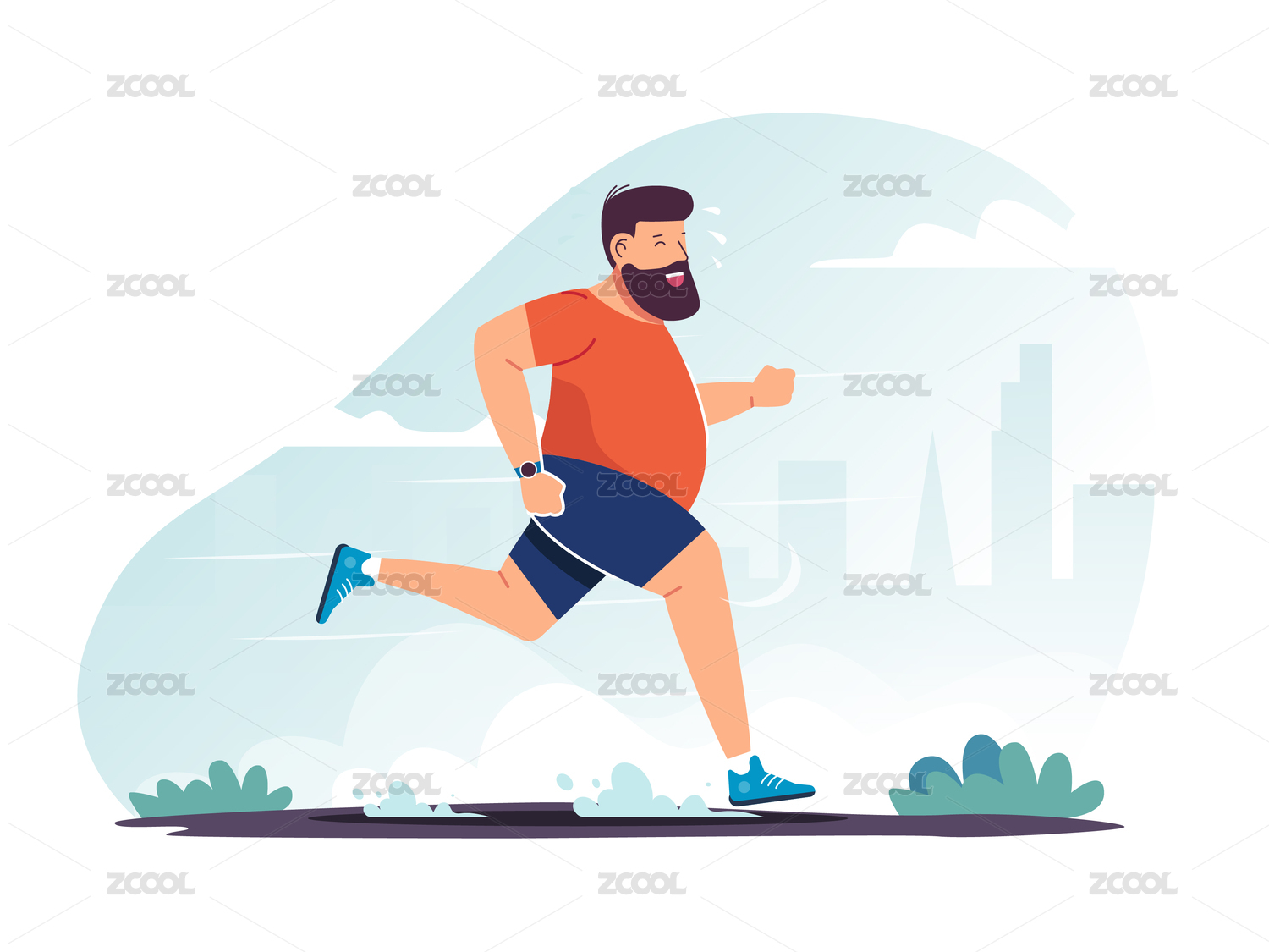 跑步中的胖子矢量插画