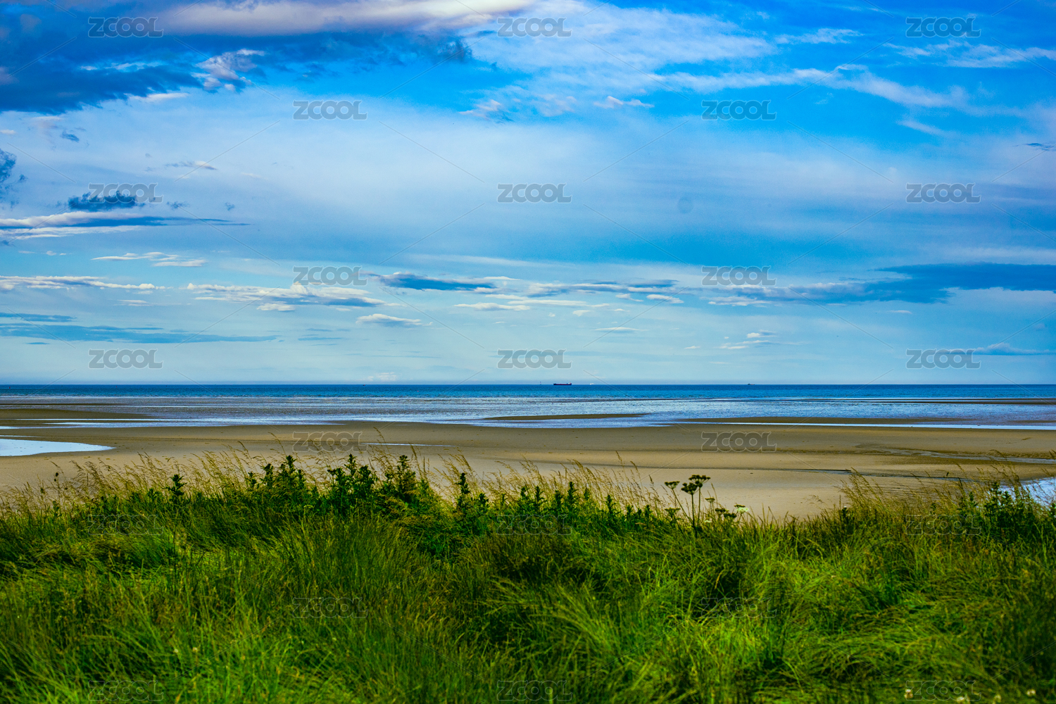 爱尔兰都柏林-蓝天白云下的湿地海滩