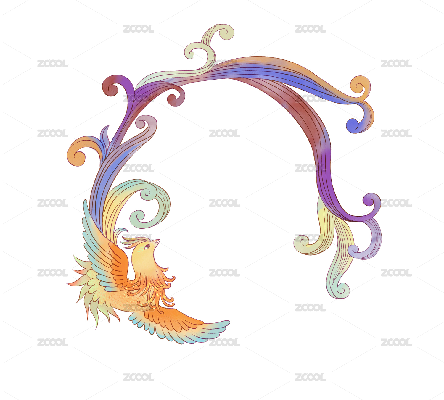 五彩凤凰展翅装饰插画
