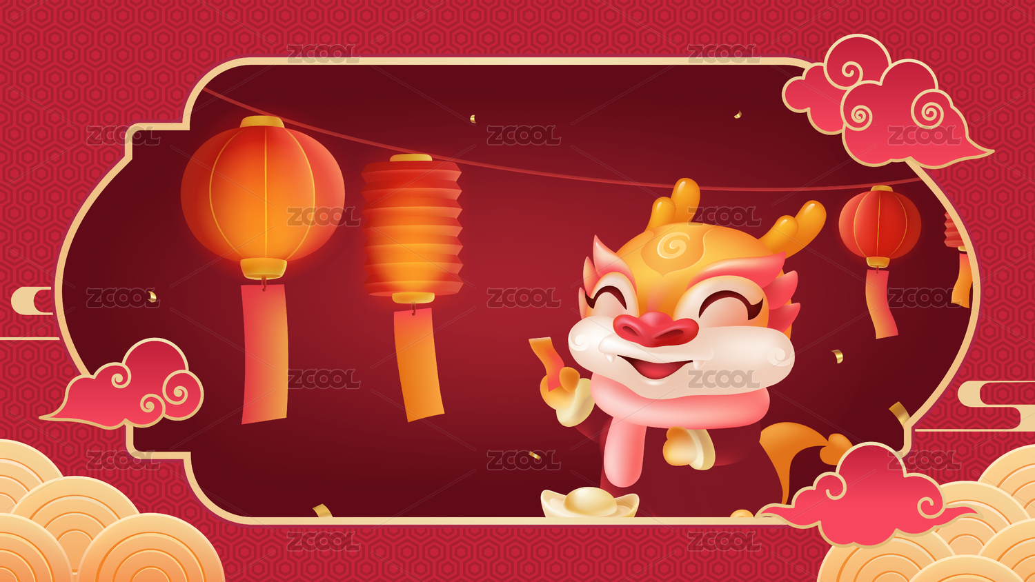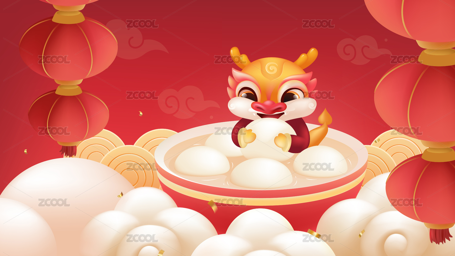 元宵节背景设计可爱的龙在碗里吃汤圆