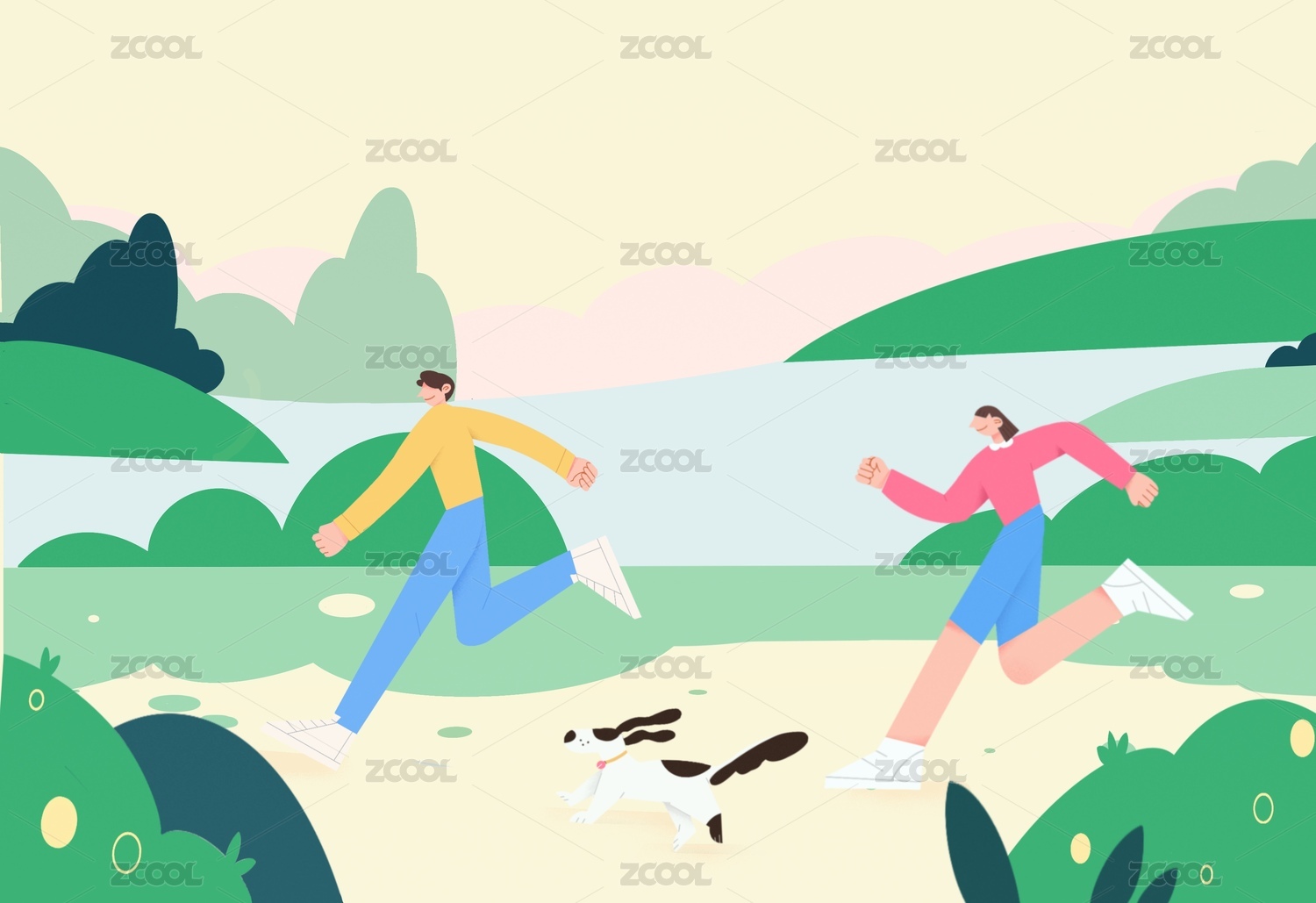 两个人在户外跑步运动插画