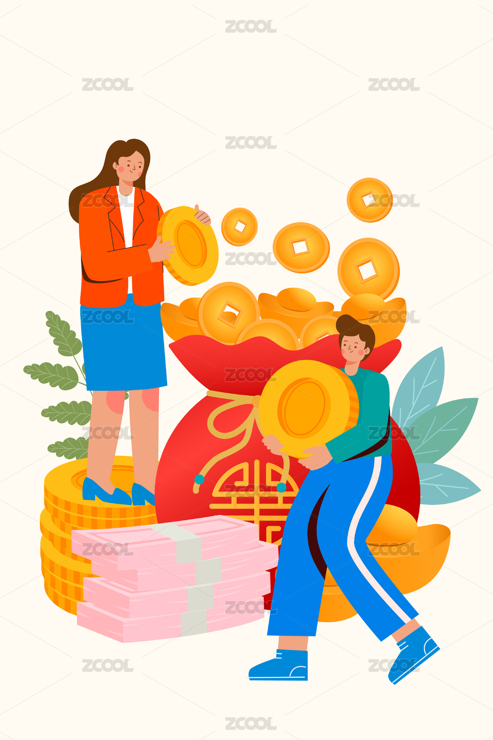 邀请好友获得红包礼物活动背景矢量卡通插画