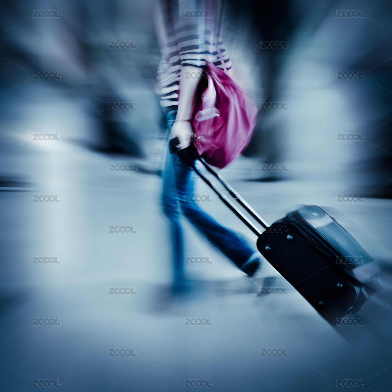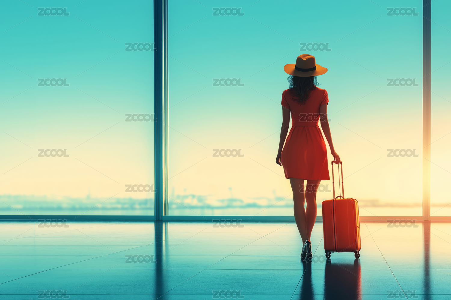 商务女性携带她的行李箱准备去长假,逃离工作,放松。混血亚洲的中国模式。