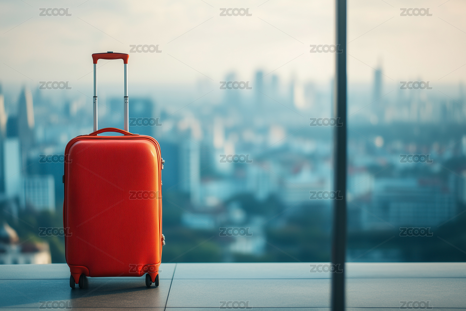 漂亮的女人要享受假期逃离办公室工作,拿着红色手提箱,想拿到远离工作,享受假期。混血亚洲的中国模式。