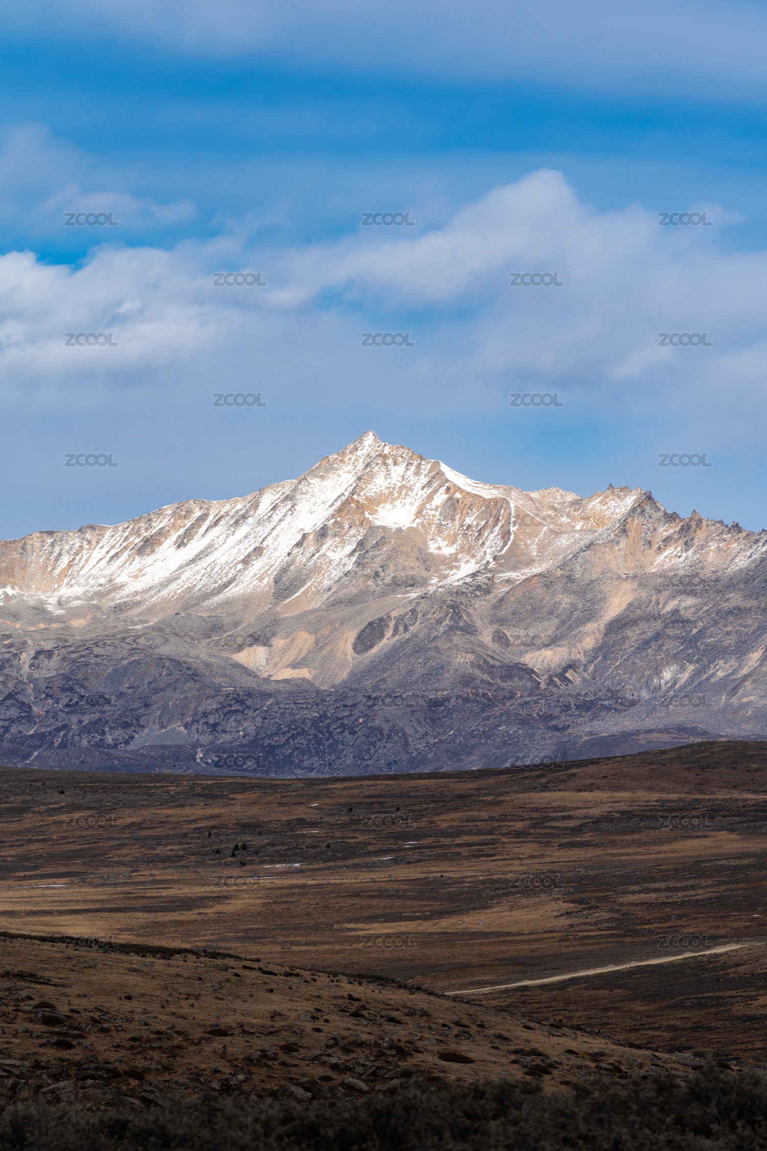 川西鱼子西观景台蓝天下的雅姆雪山风光