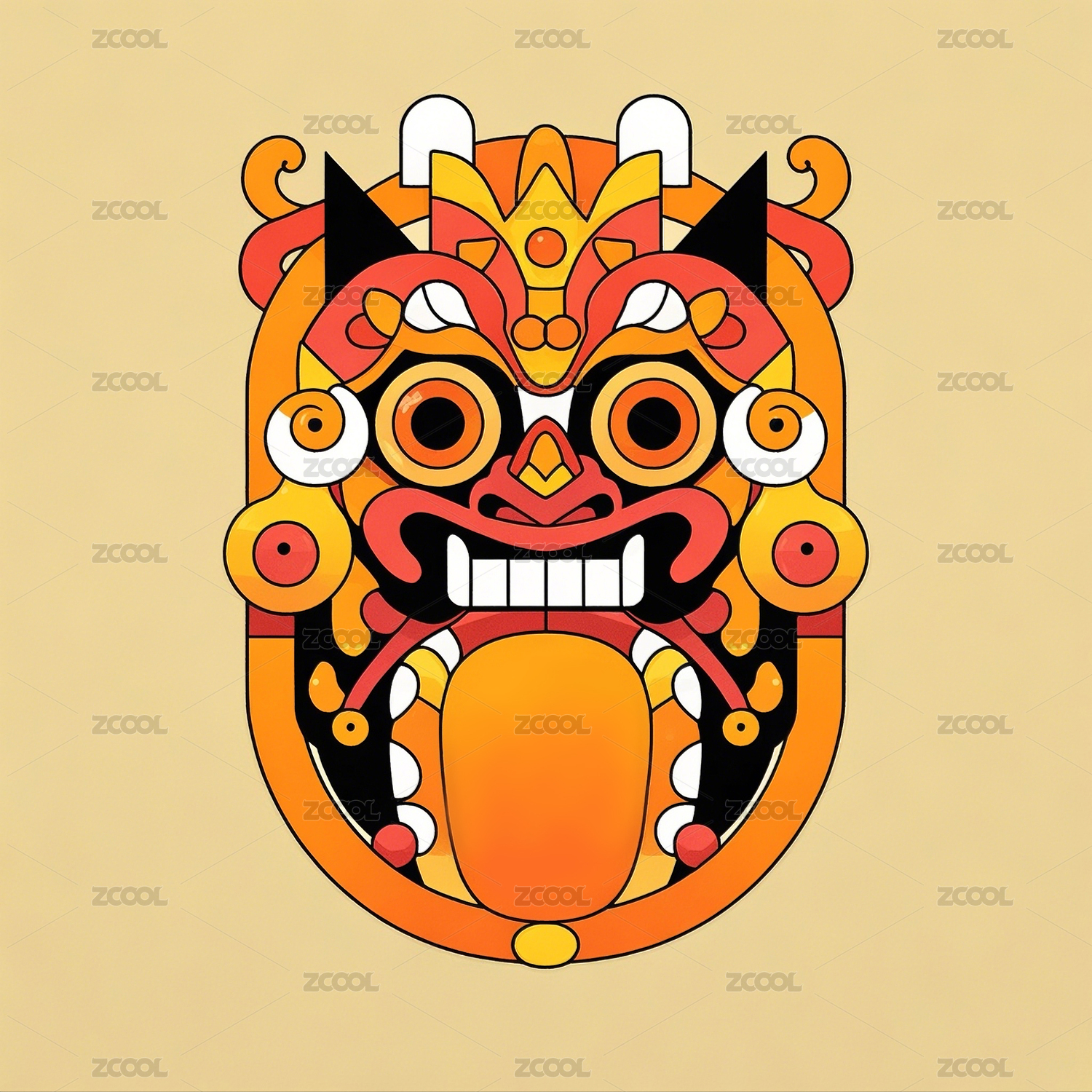 傩文化,巫文化,面具,民族风,扁平风格,抽象,传统文化,民俗,图案,纹样