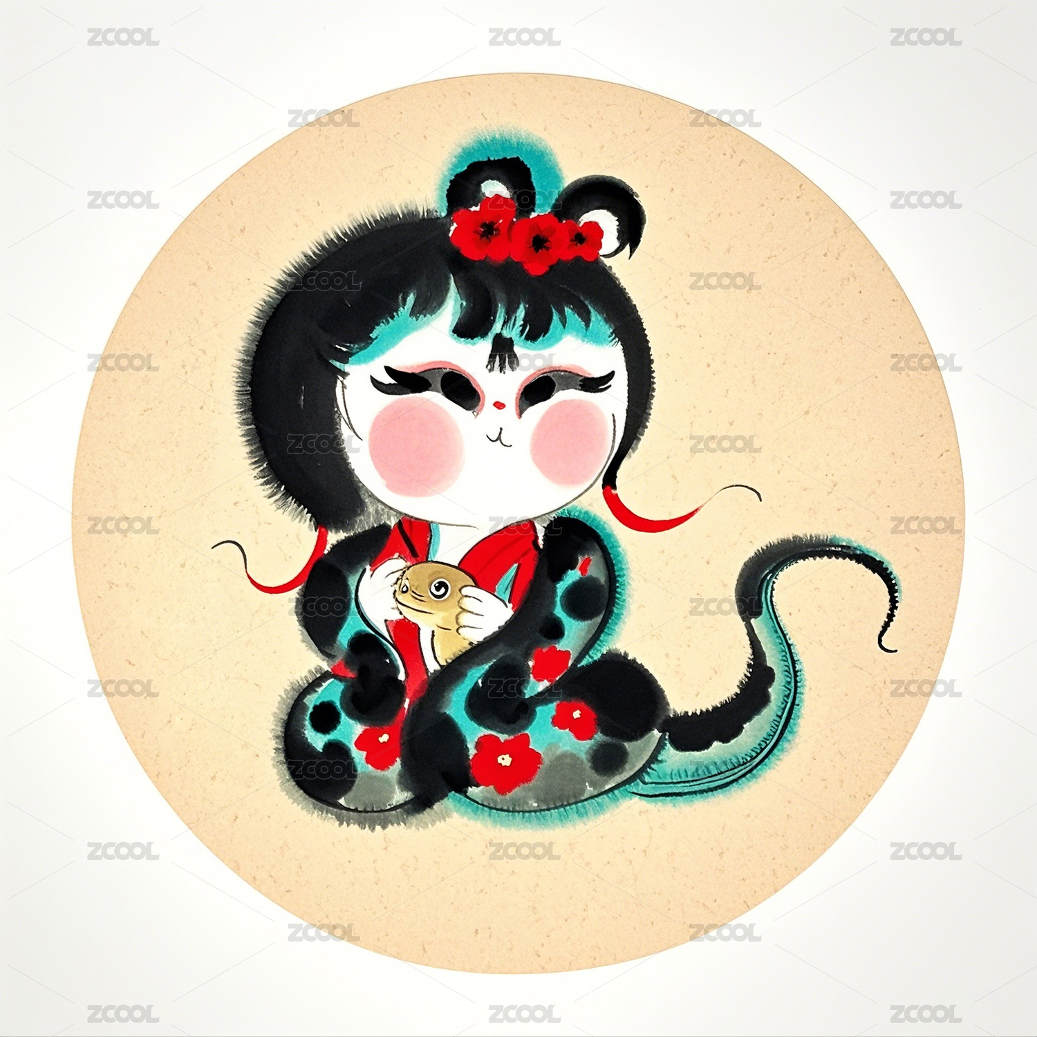 中国画蛇妖女娃娃