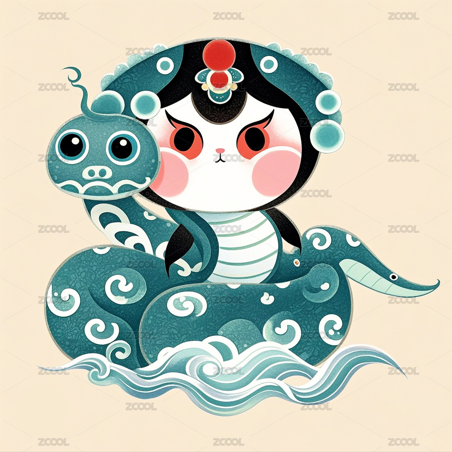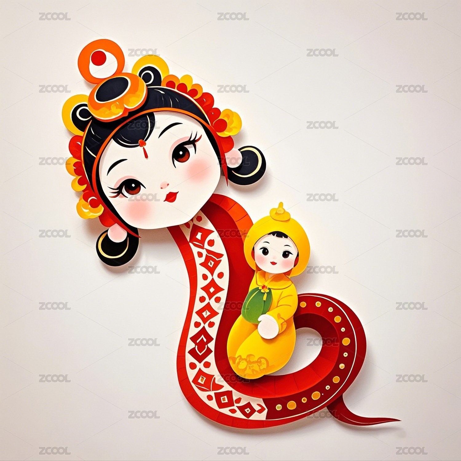 扁平风格的蛇妖娃娃图案造型