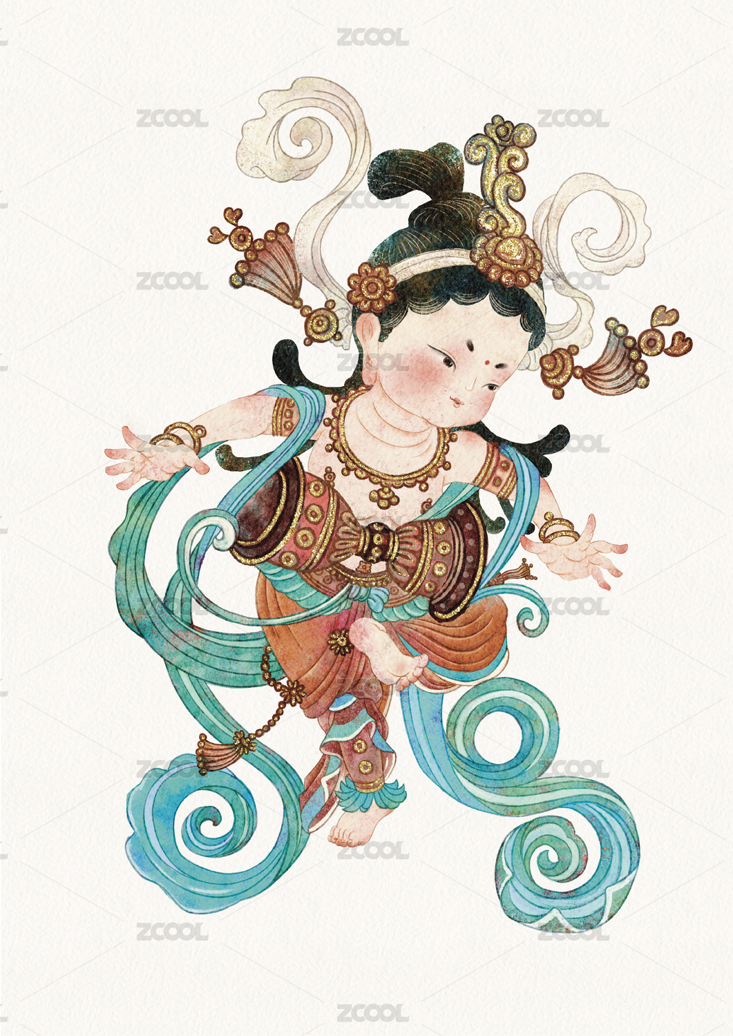 敦煌飞天插画持花飞天古风国潮插画