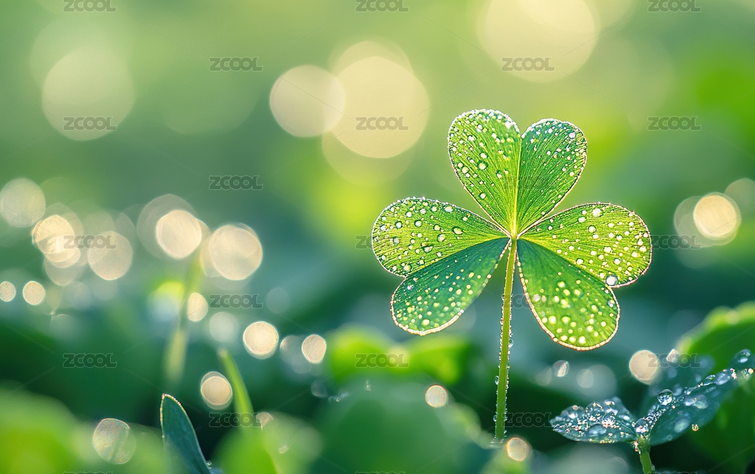 清新四叶草与水滴