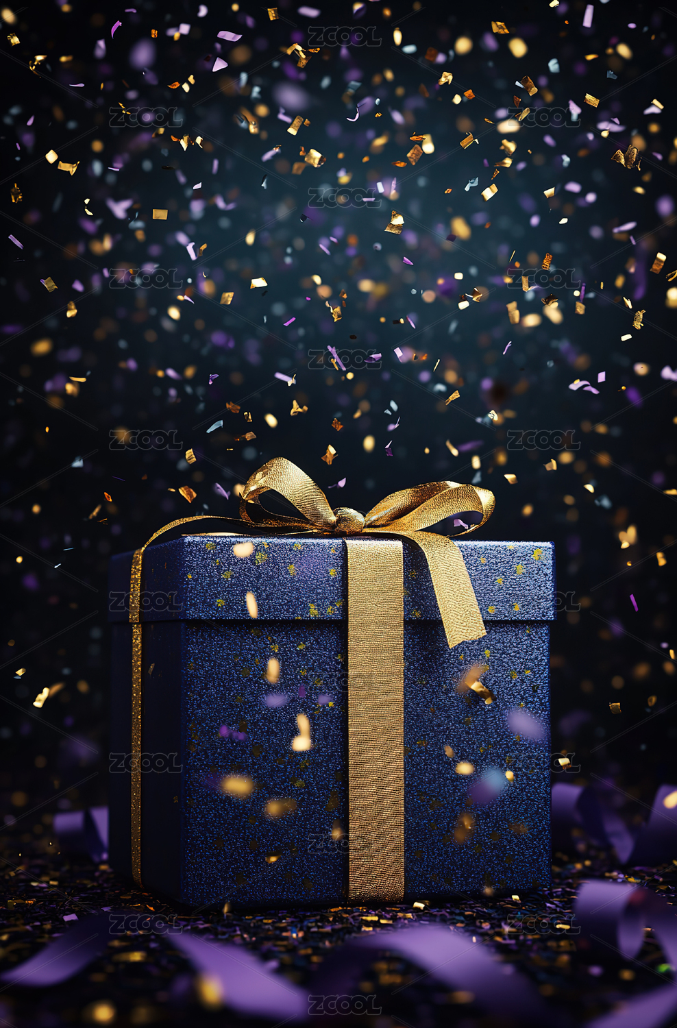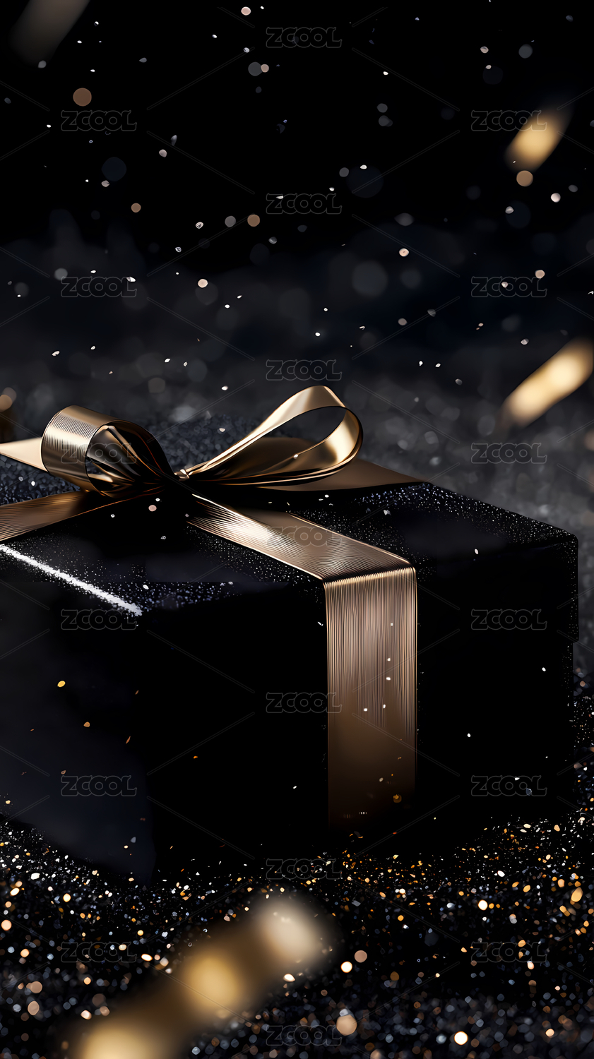 黑色礼盒与金色丝带,奢华闪耀的节日气氛