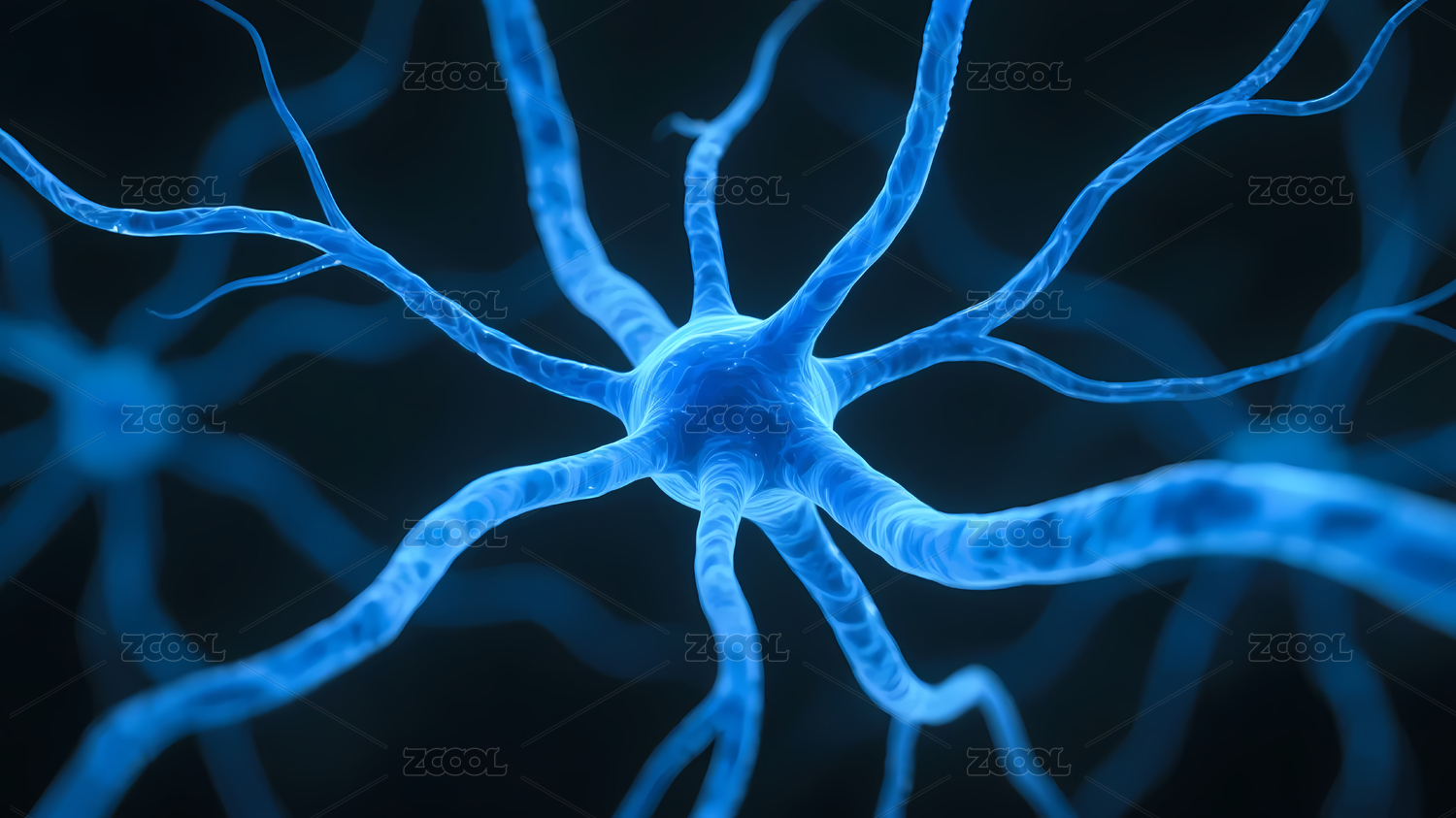 神经元细胞神经系统特写,抽象的蓝色闪光神