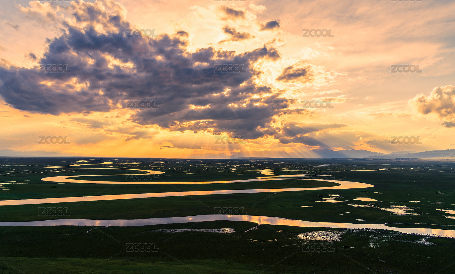 新疆巴音布鲁克九曲十八弯日落