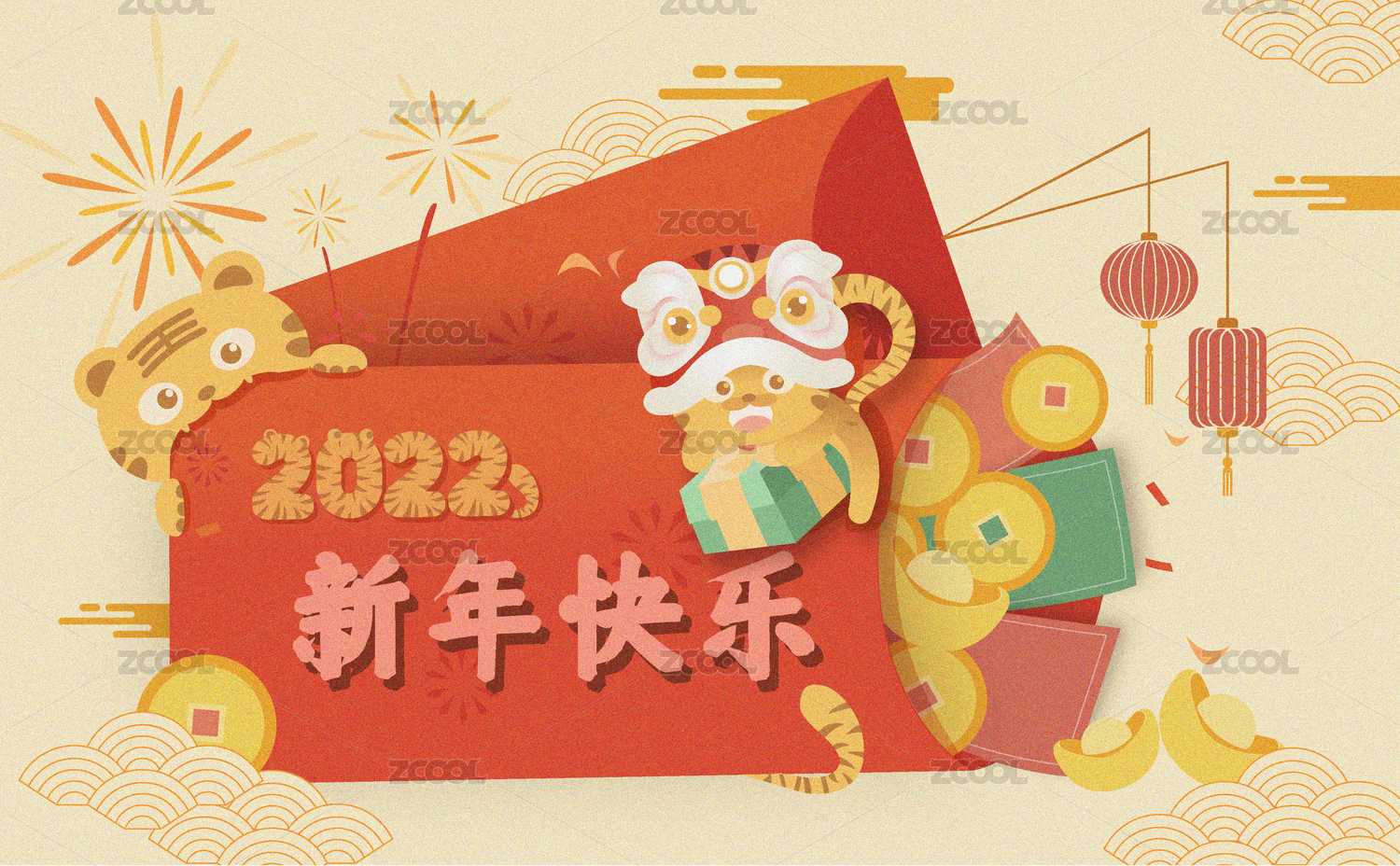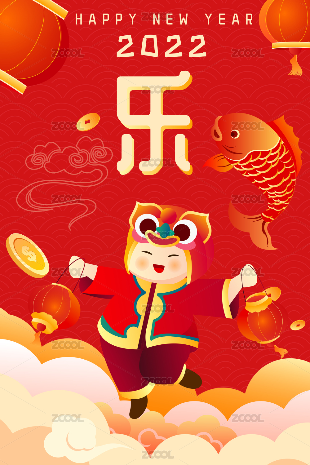 新春快乐虎年2022年新年钱币灯笼矢量图