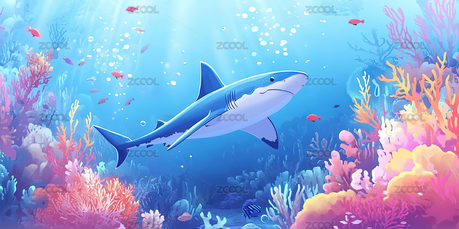 可爱的鲨鱼在水中欢快的游着