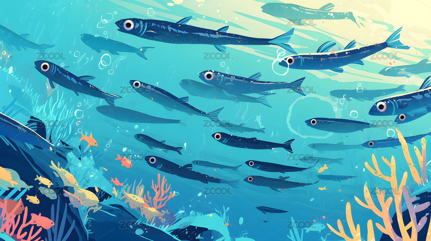 绚烂海底鱼群插图
