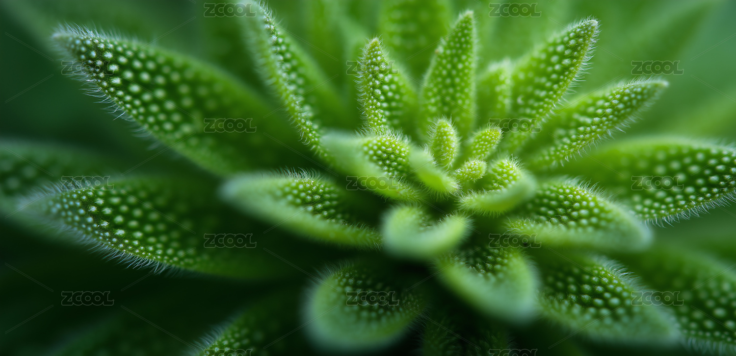 特写绿色多肉植物叶片带绒毛与白点展现微观