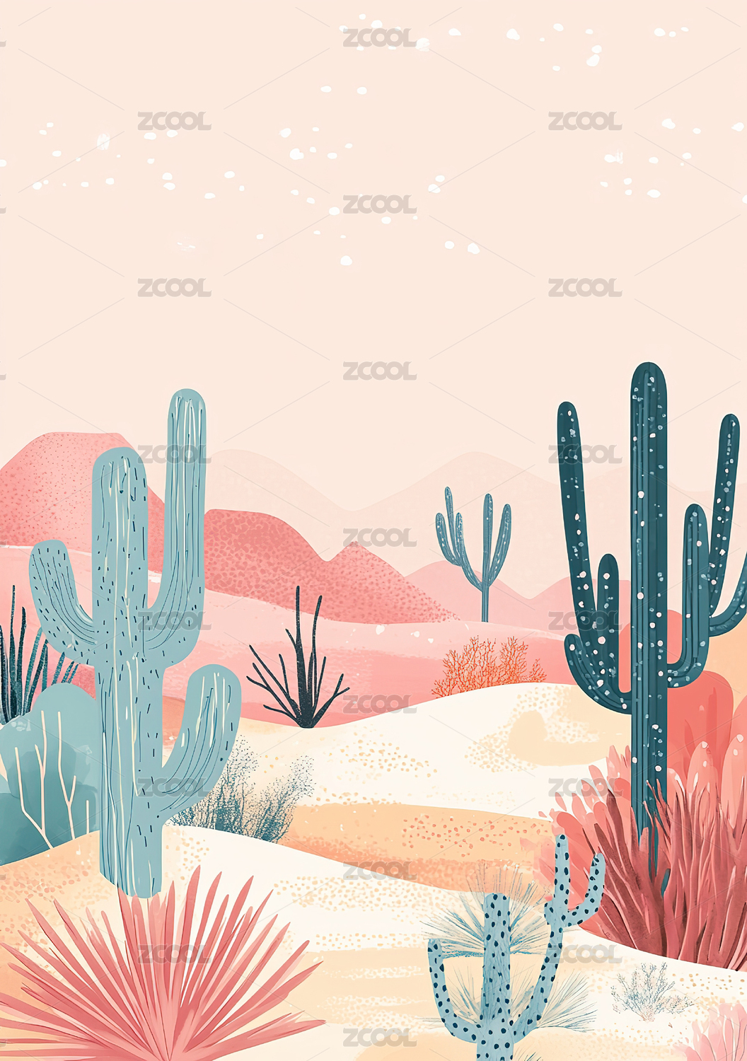 纯色背景的仙人掌仙人球盆栽壁纸插画