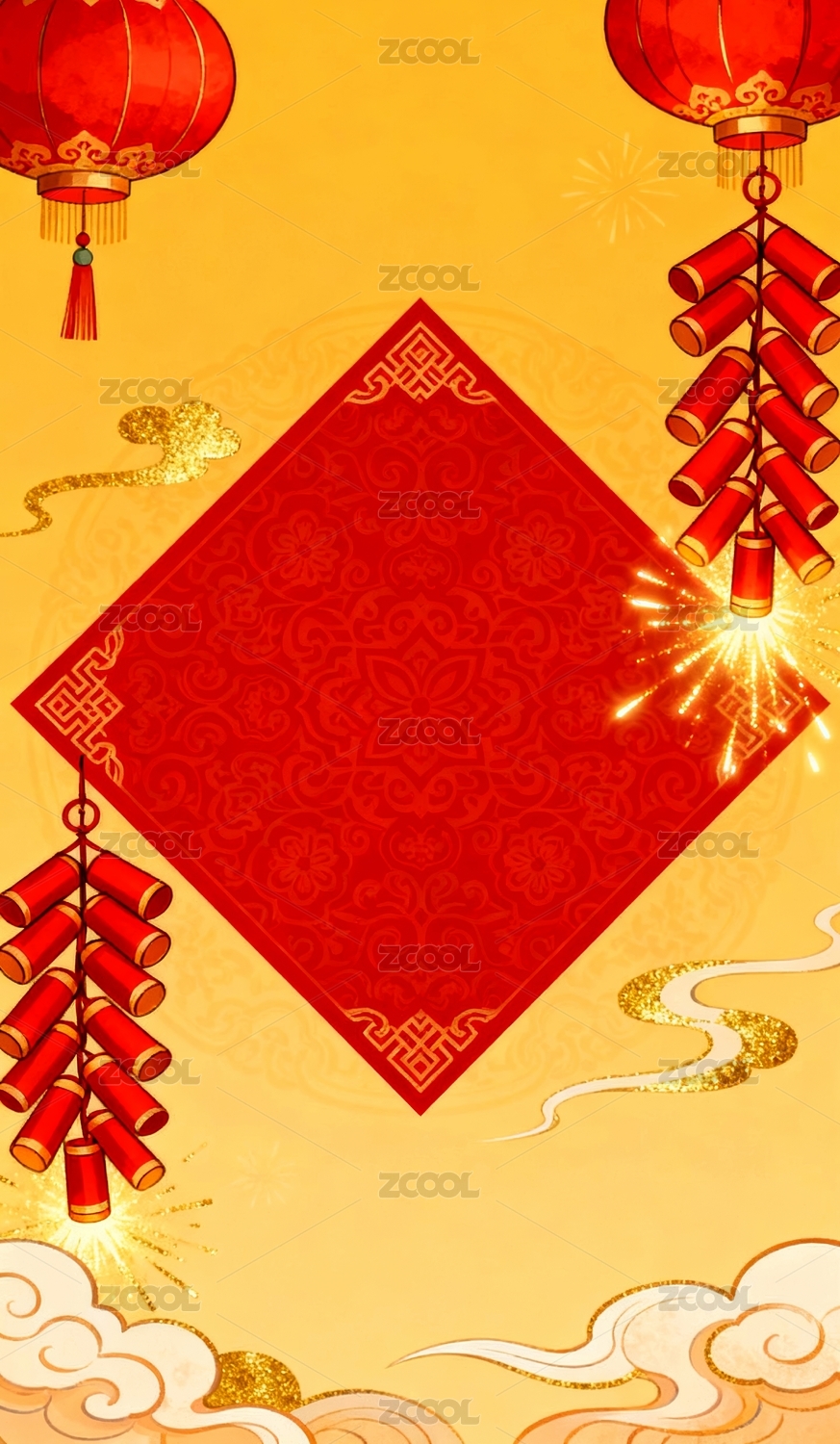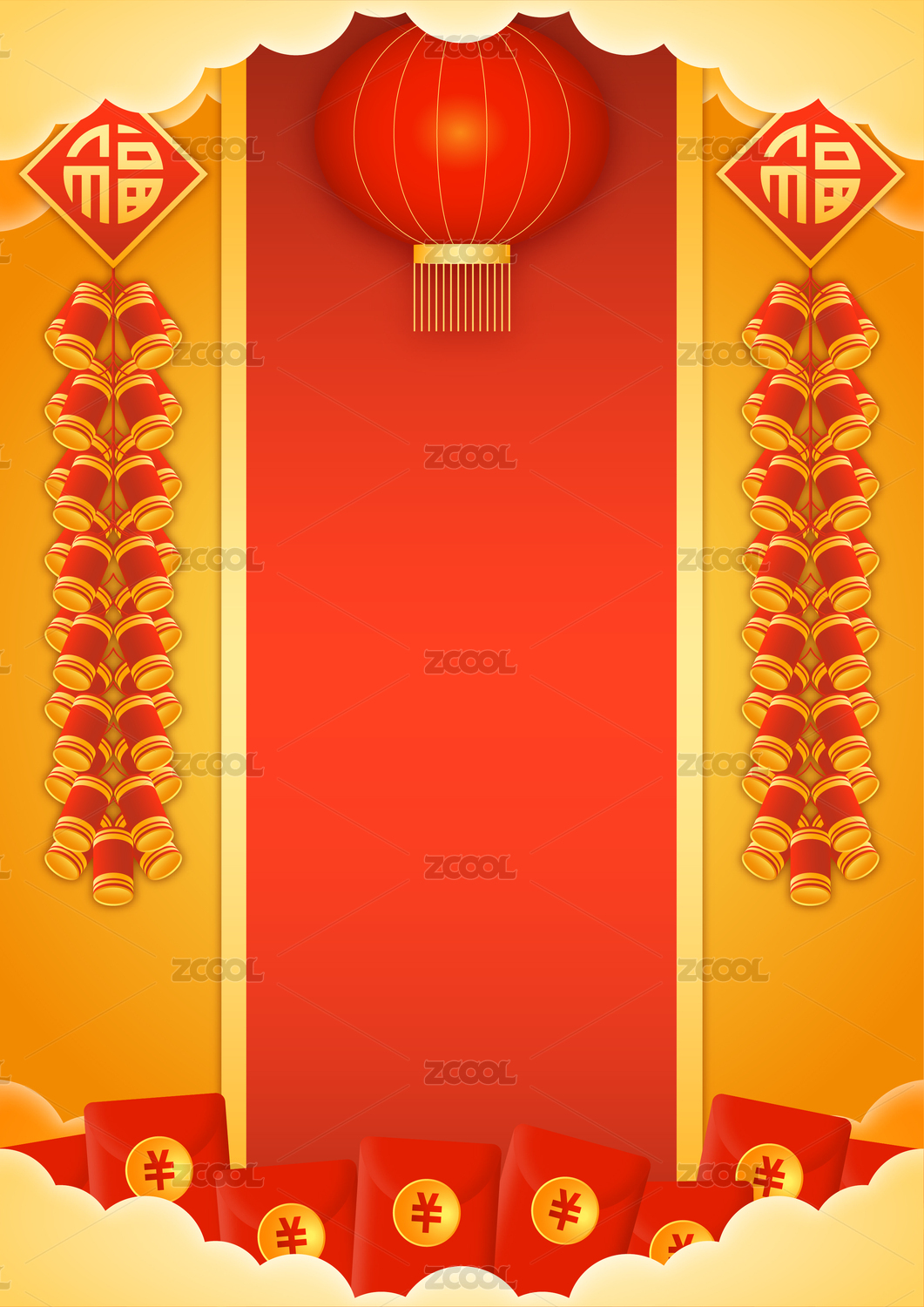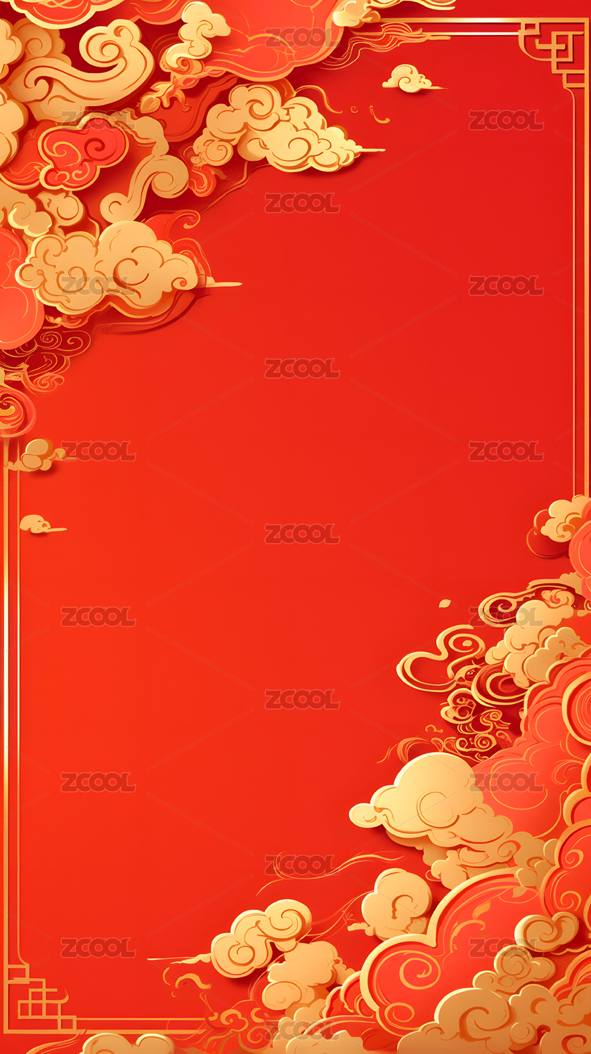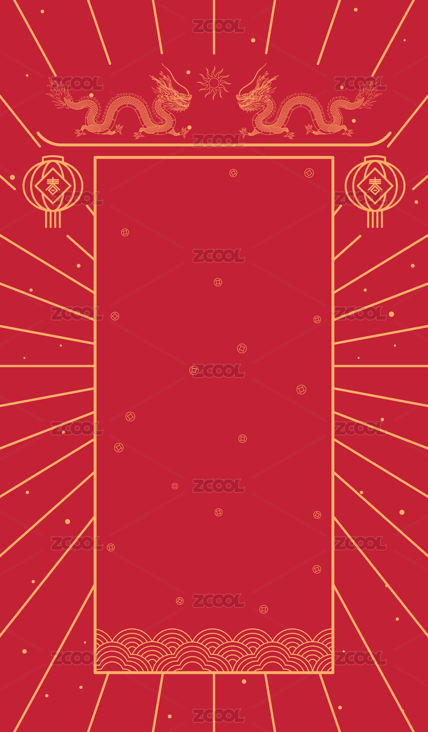 虎年,老虎,红色,金色,插画,国风,喜庆,热闹,福字,对联