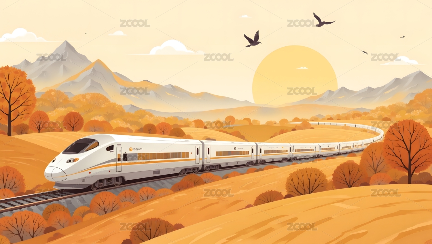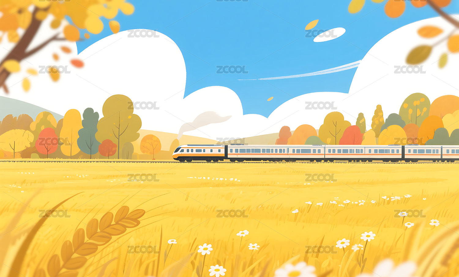 秋天秋季立秋秋分自然户外风景卡通漫画插画