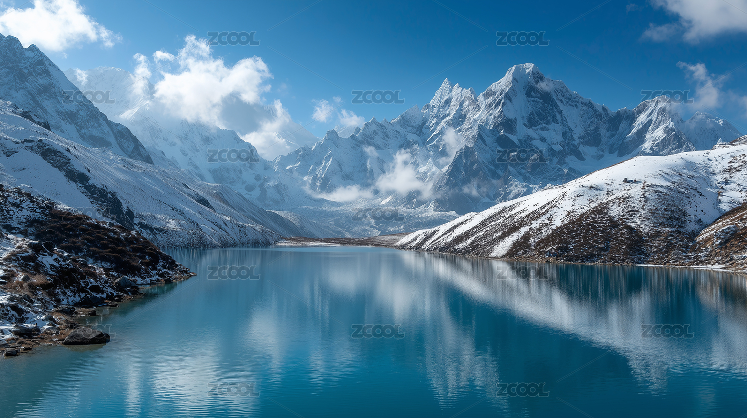 山脉,湖泊,冬季,自然,风景,反射,宁静,寒冷,雪景,雪山
