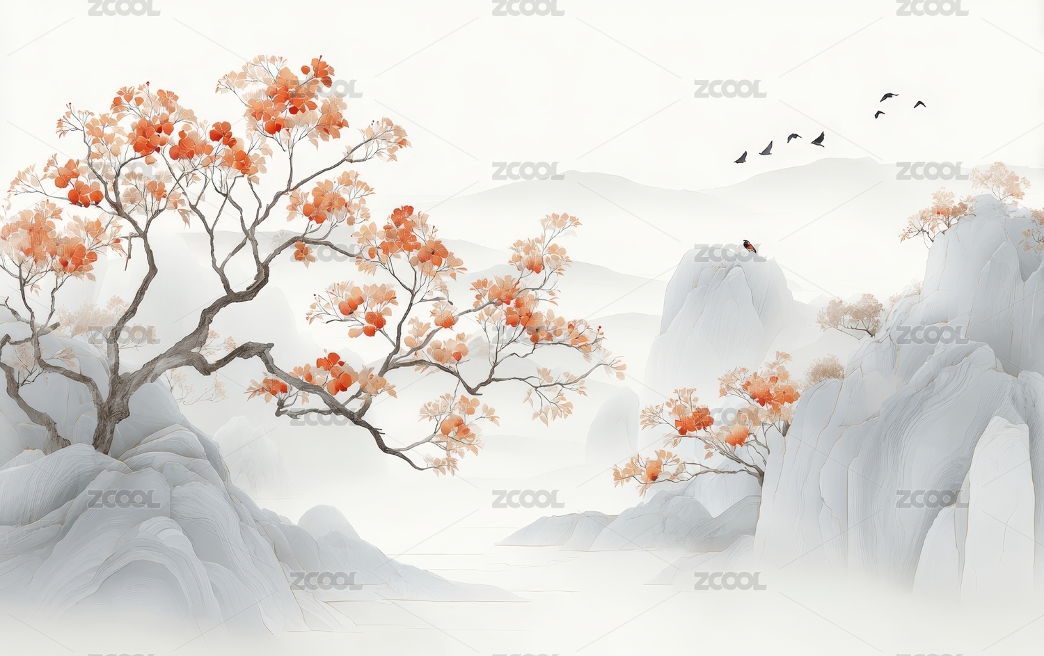 手绘中国风意境水墨山水风景画 新中式抽象意境山水画