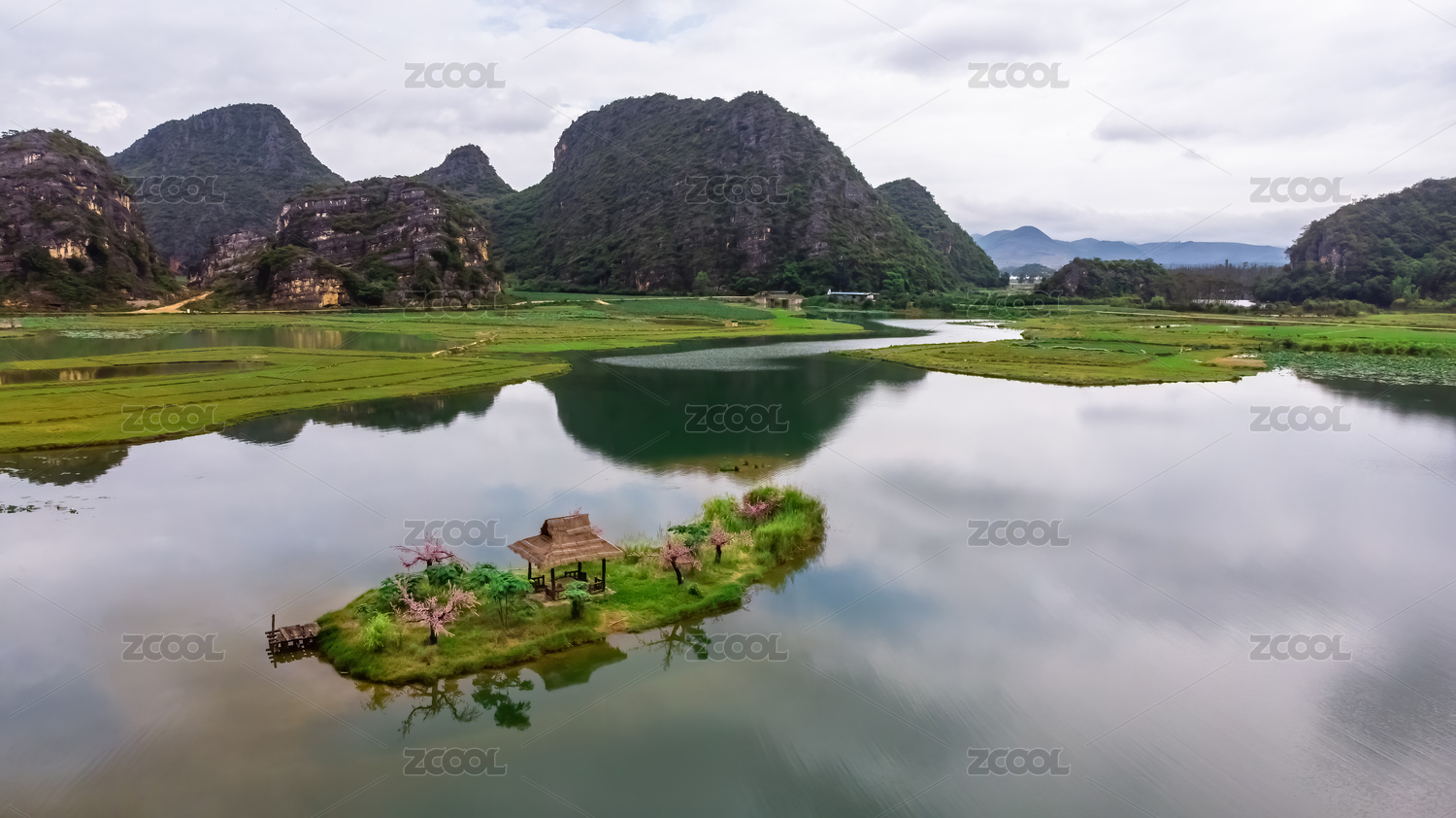 云南文山州丘北县普者黑风景区西荒湿地风光