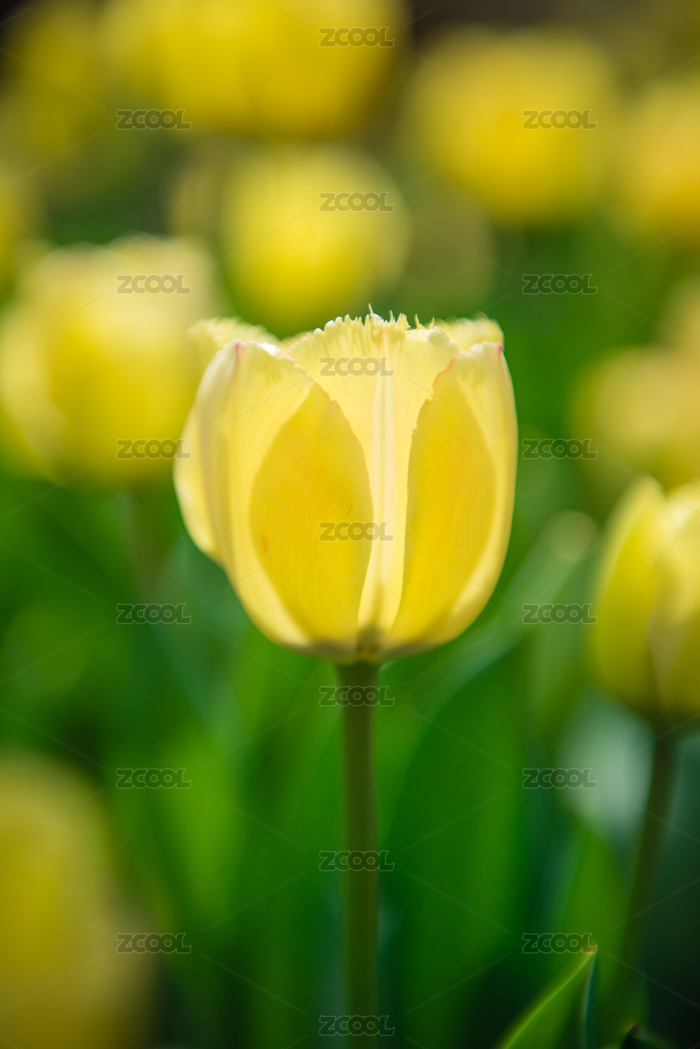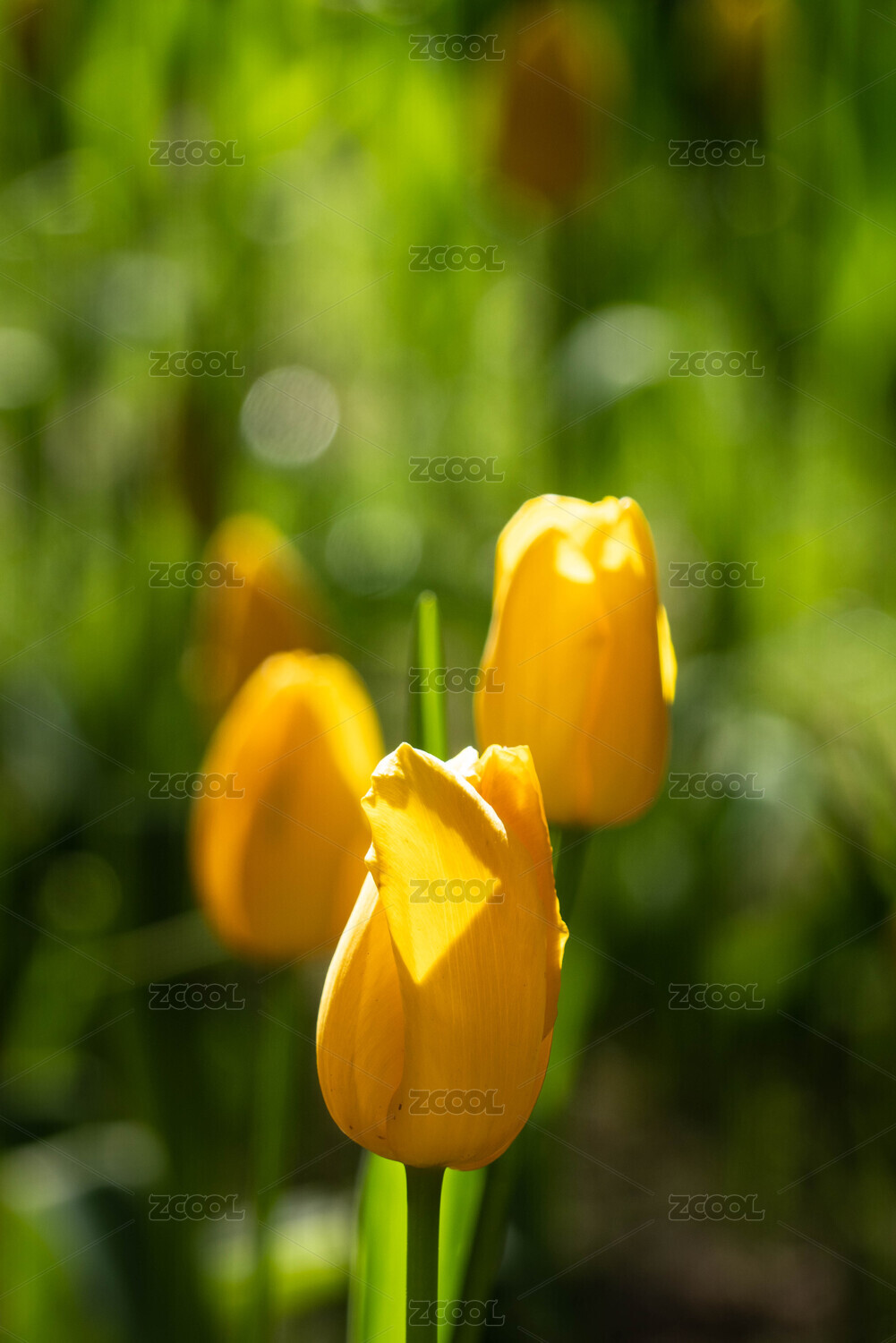 阳光照耀下的黄色郁金香