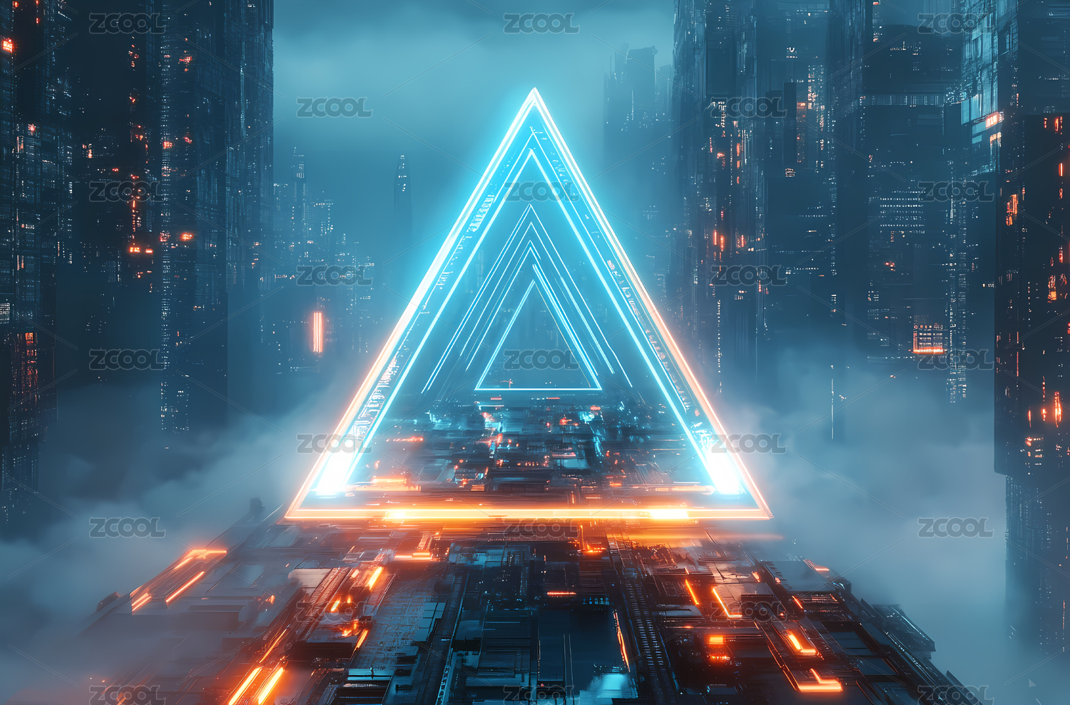 霓虹三角形通道通往未来城市