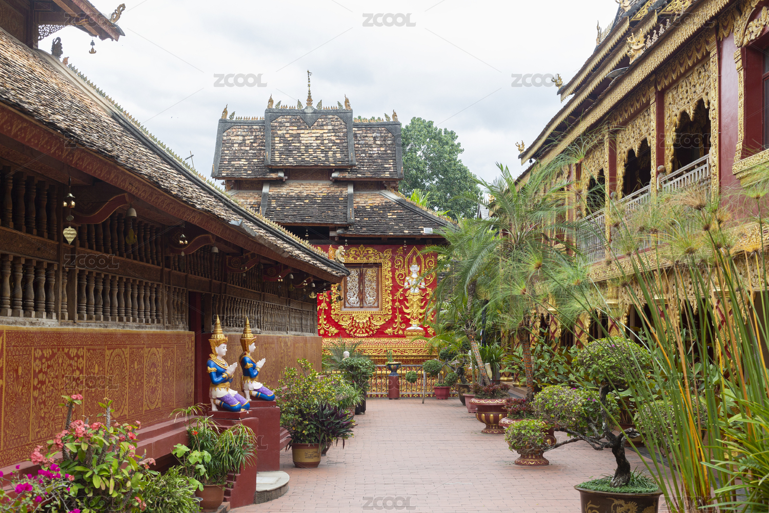 泰国清迈古城清曼寺佛塔园林景观