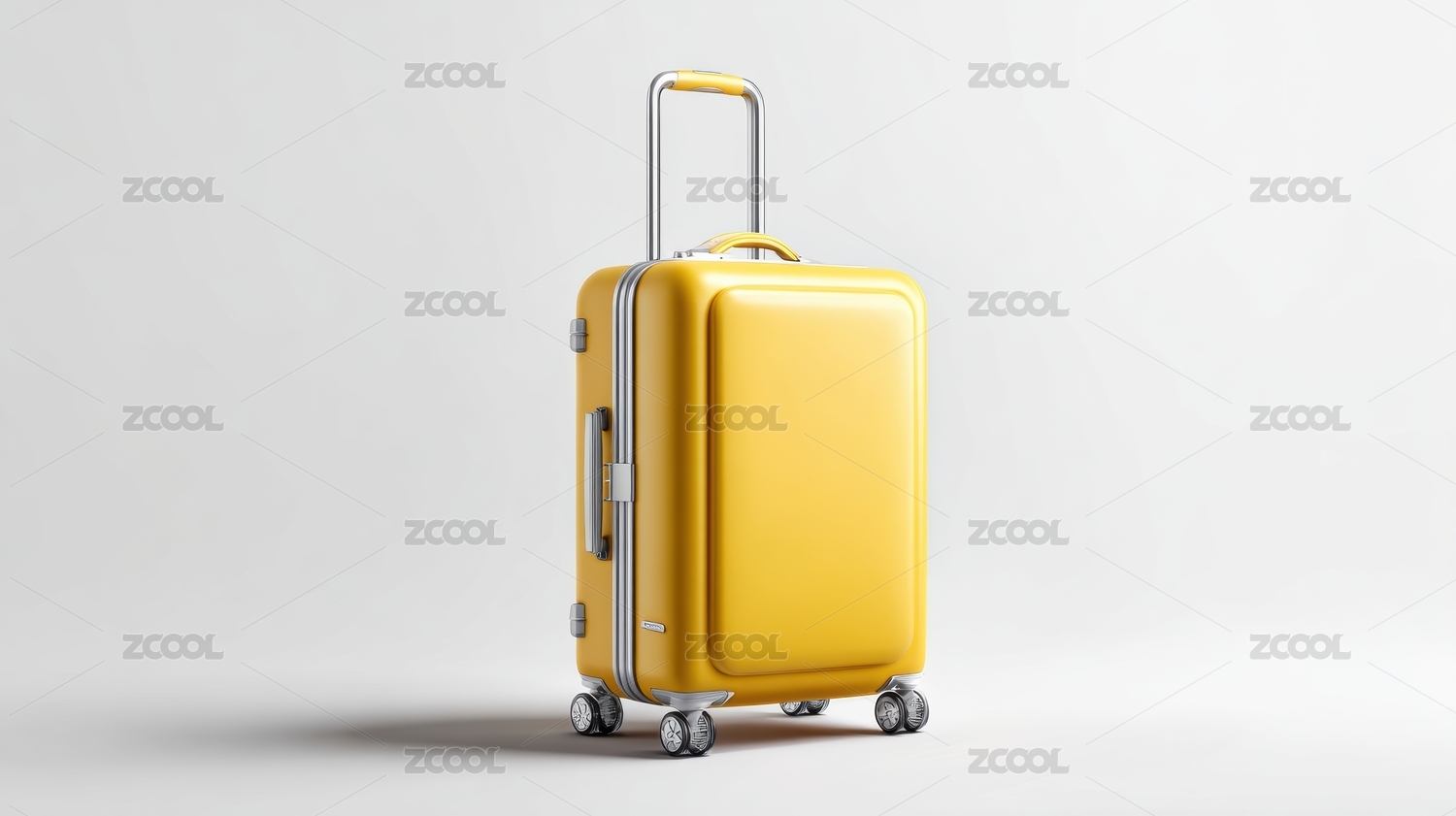 蓝色背景带轮子的蓝色手提箱特写高清图片