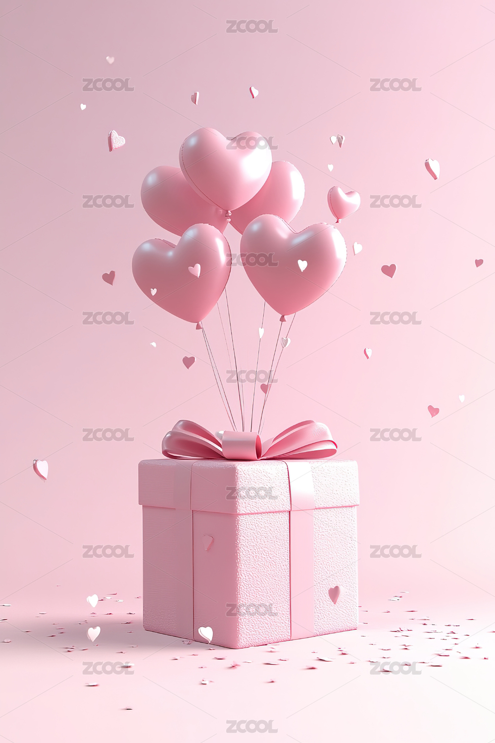 粉色背景爱心气球礼物