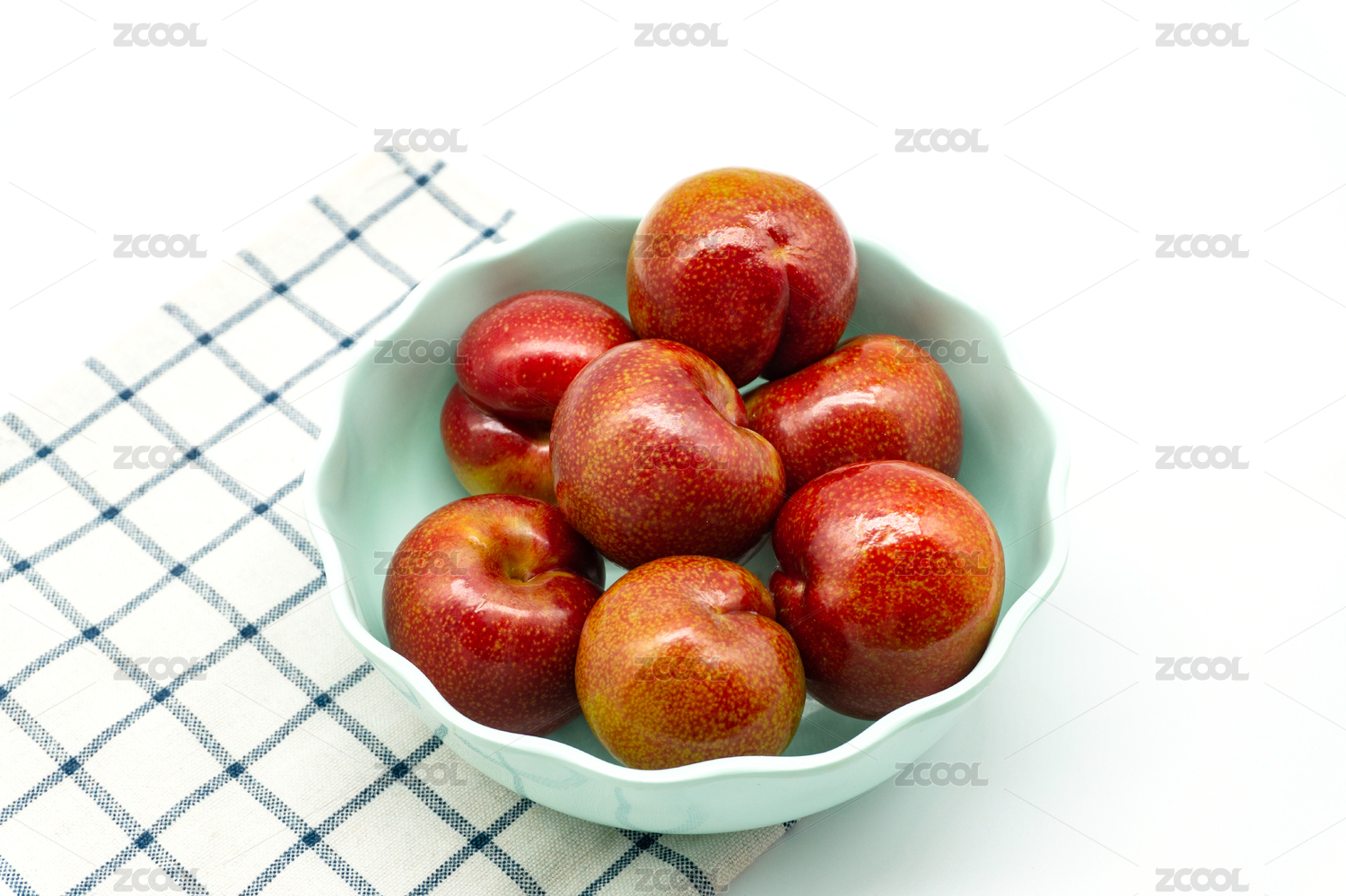 白底上放着一盘新鲜的油桃