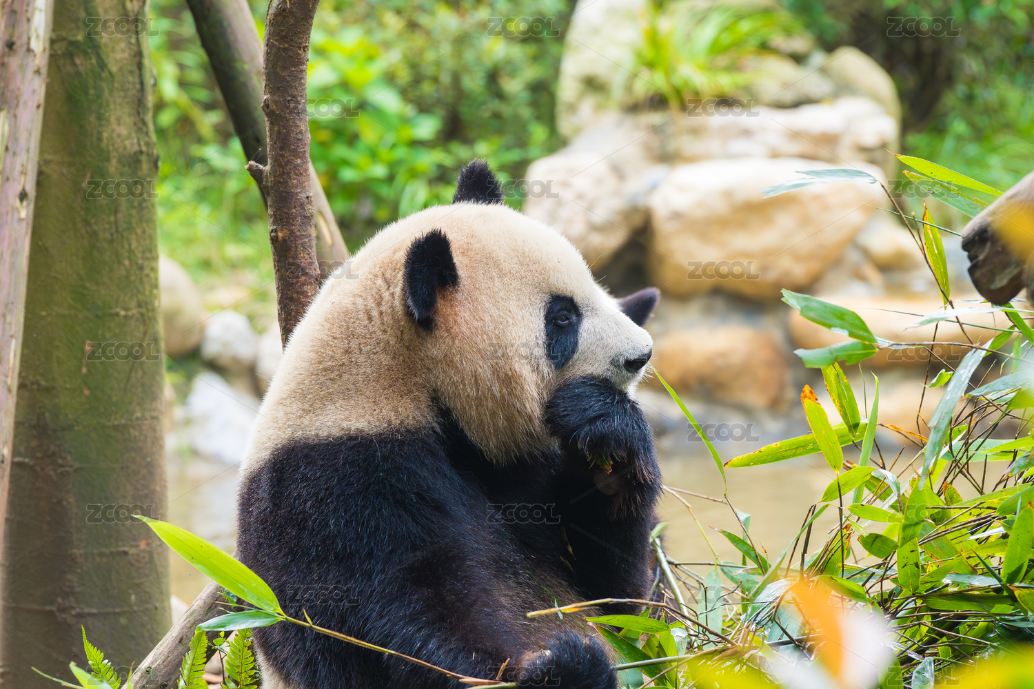 动物园里吃竹子的熊猫