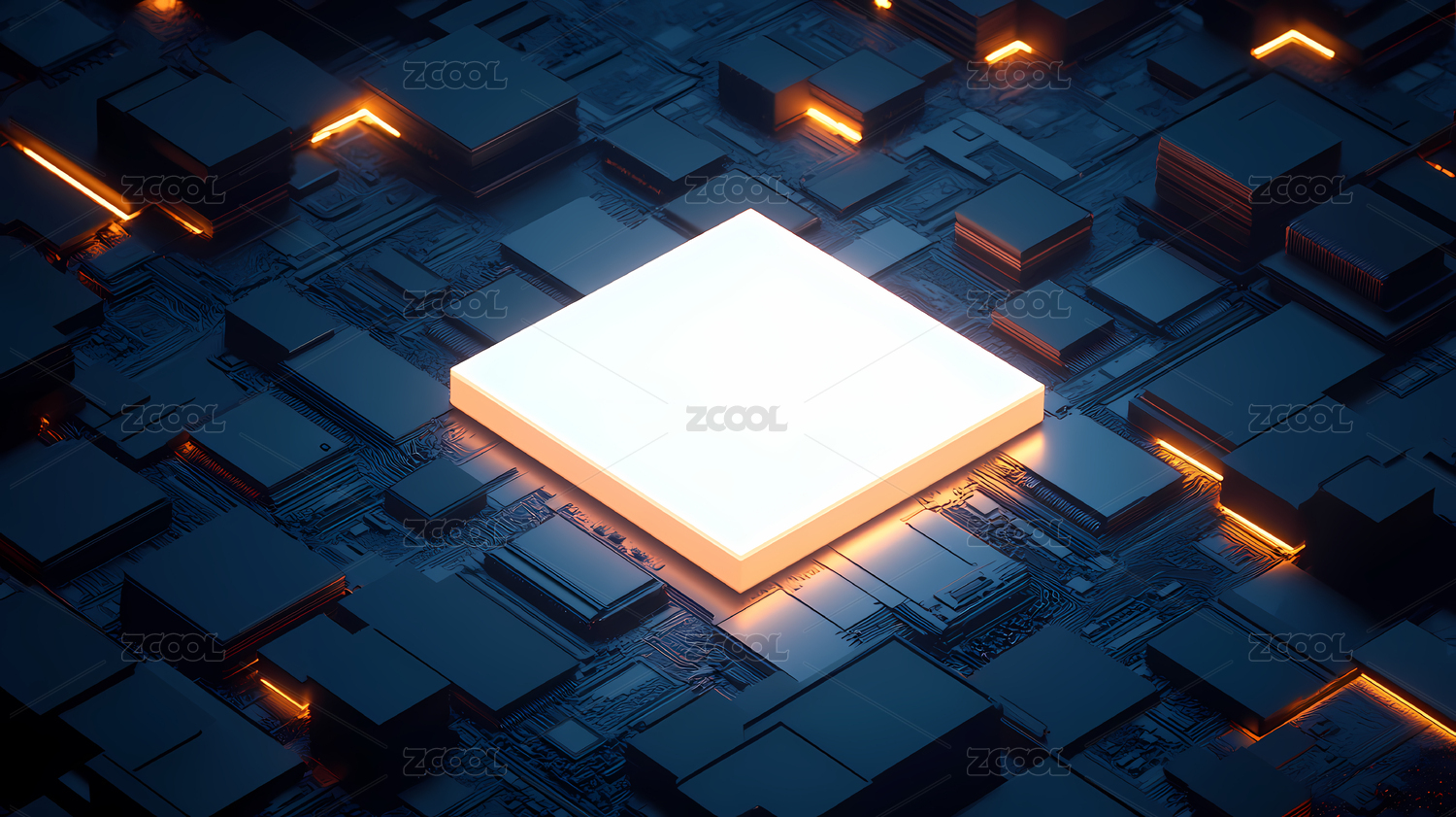 芯片金融科技赛博朋克人工智能三维渲染电路