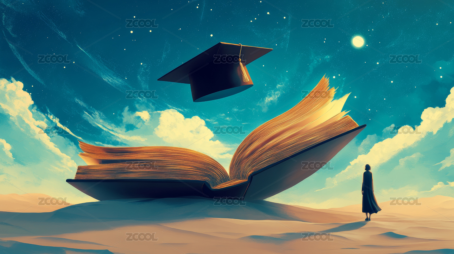 三维,3D,插画,教育,书本,学习,大学生,毕业季,阳光,纸张
