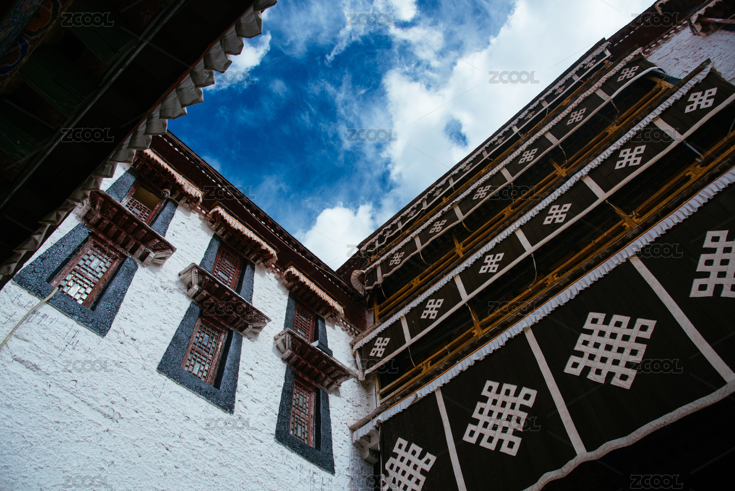 中国布达拉宫内景,红墙与藏族风格建筑