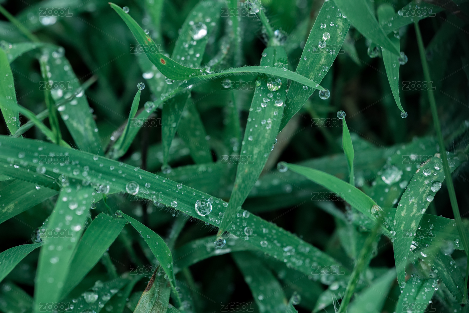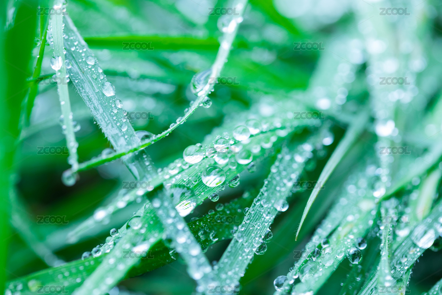 春天翠绿的青草上挂满的水珠