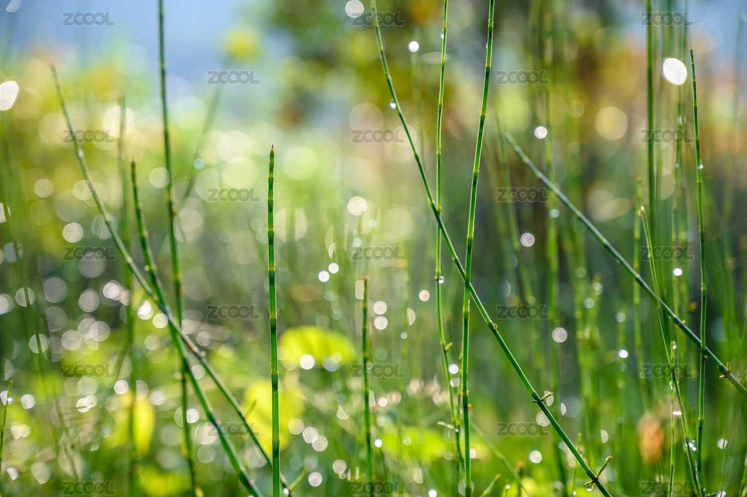 夏季清晨草地上晶莹剔透的露珠