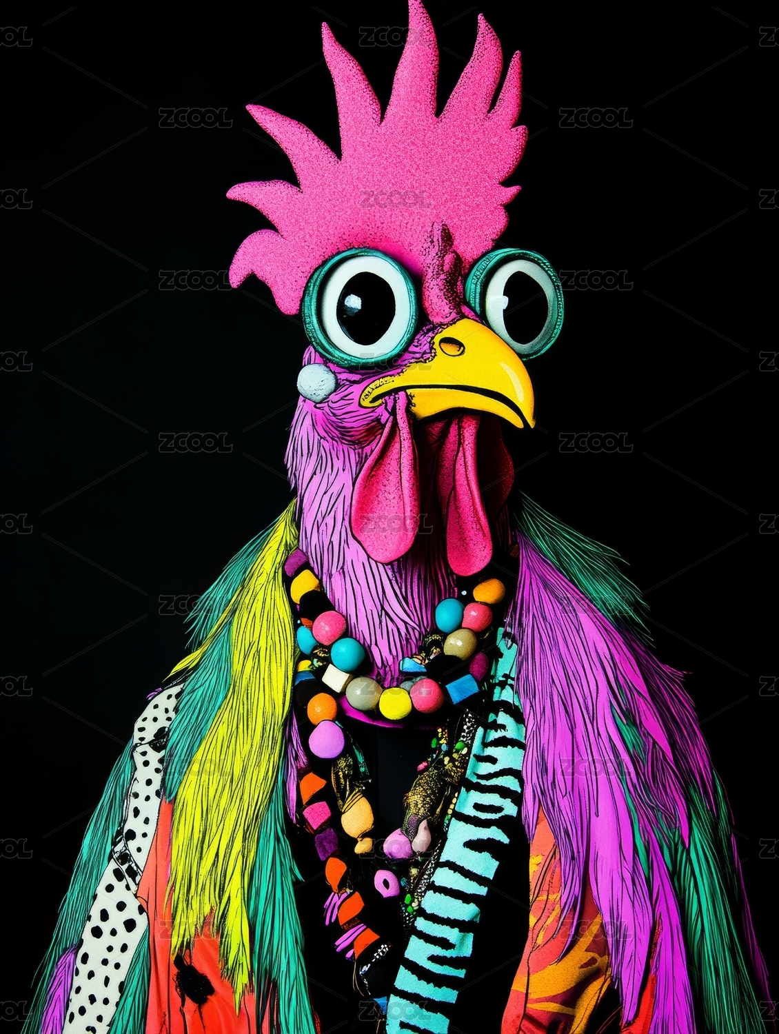 嘻哈时尚涂鸦潮流风格生肖鸡插画