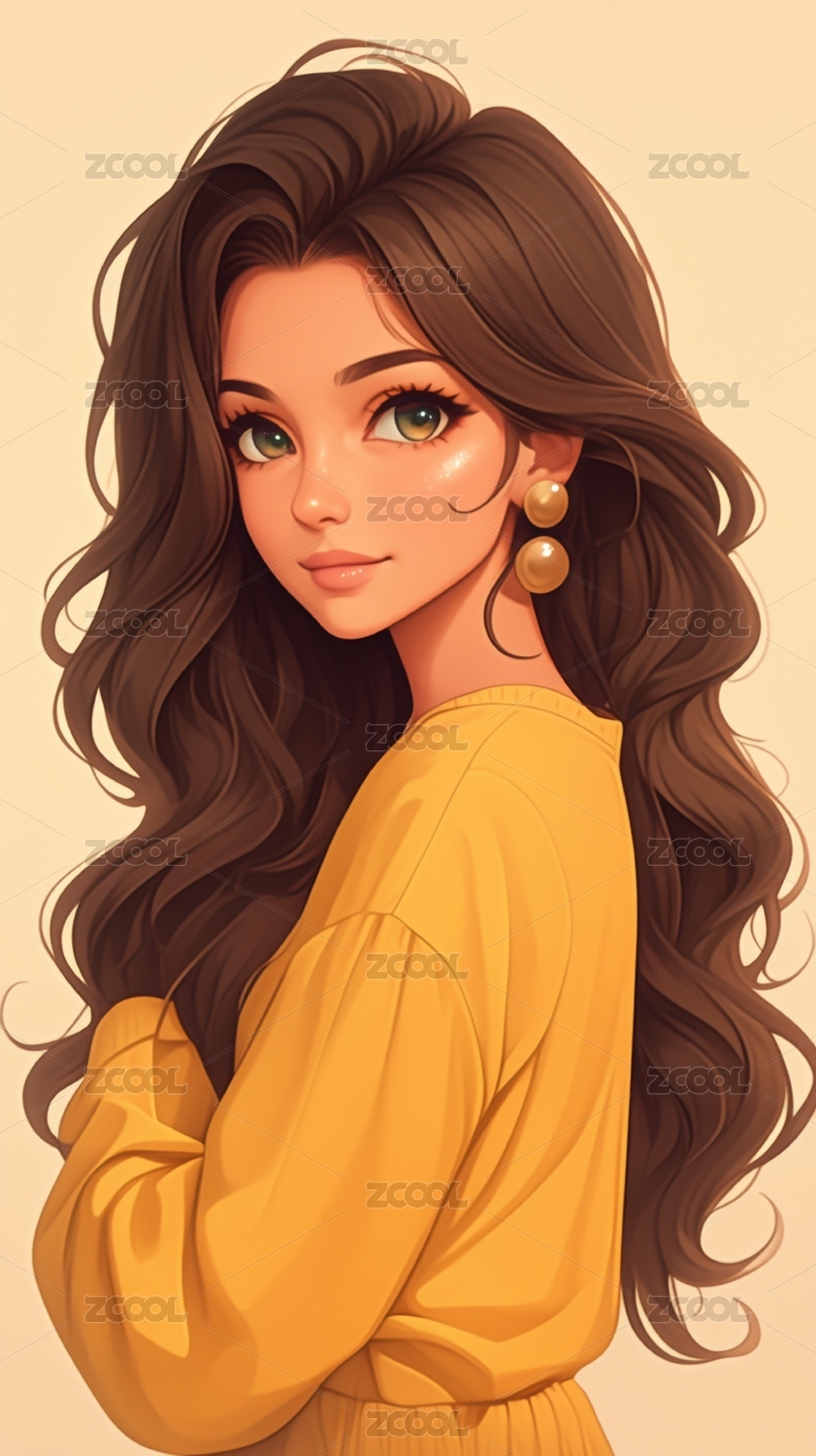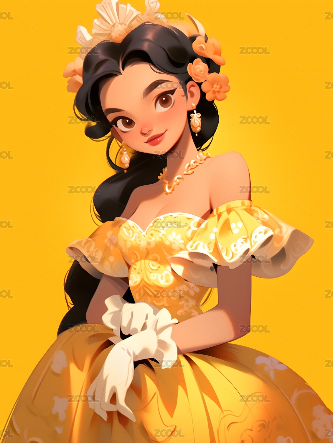 连衣裙,黄色,女孩,女子,公主,贵妇,女生,长发,卷发,耳环